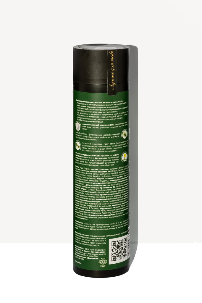 Цена без акции - 322 рублей. Фитокератин и аминокислотный комплекс интенсивно увлажняют кожу головы, уплотняют и делают прочнее длину волос. Экстракты имбиря и гинкго билоба улучшают состояние сосудис... Показать описаниетой стенки, а терпеновые лактоны эффективно стимулируют кровообращение кожи головы, улучшая питание корней волос. Рутин улучшает состояние капилляров и снижает ломкость сосудов, усиливая действие экстрактов имбиря и гинкго билоба. Курильский чай содержит специфические катехины – сильнейшие антиоксиданты, защищающие клетки кожи от оксидативного стресса, уменьшает аллергические проявления и раздражение кожи. Корень лопуха и крапива содержат полноценный рацион минералов и витаминов, помогающий корням волос переходить в активную фазу роста. Моющая основа шампуня на основе ультрамягких ПАВ из аминокислот и растительных масел деликатно очищает, увлажняя и смягчая даже очень поврежденные волосы. Состав: вода очищенная (Aqua); кокамидопропилбетаин* (Cocamidopropyl Betaine); лаурил саркозинат натрия* (Sodium Lauroyl Sarcosinate); кокоил изетионат натрия* (Sodium Cocoyl Isethionate); пребиотик (Sorbitol); провитамин В5 (D-panthenol); фитокератин (Hydrolyzed Soy and Rice Protein); экстракт имбиря (Zingiber Officinale Root Extract); глицерин (Glycerin); экстракт гинкго билоба (Ginkgo Biloba Extract); экстракт корня лопуха (Arctium Lappa Root Extract); экстракт курильского чая (Pentaphylloides Fruticosa Extract); экстракт крапивы (Urtica Dioica Leaf Extract); рутин (Rutin); витамин В11 (Carnitine); аминокислоты: глицин, аргинин, пролин (Glycine, Arginine, L-proline); ксантановая камедь* (Xanthan Gum); аллантоин (Allantoin); лечебная соль (Rapan Salt); дельта-глюконолактон (Delta-Gluconolactone); кофеин (Caffeine); альфа-бисаболол (Bisabolol); эфирные масла душицы, аира, бархатцев, герани, мирта (Origanum Vulgare Essential Oil, Acorus Calamus Essential Oil, Tagetes Erecta Essential Oil, Geranium Essential Oil, Myrtus Communis Essential Oil); лимонная кислота (Citric Acid); натуральный витамин Е (Tocopherols Blend); органический консервант Sharomix 708* (Benzyl Alcohol, Benzoic Acid, Sorbic Acid, Glycerin); натуральный ароматизатор (Natural Fragrance). (*) разрешены европейскими системами экосертификации для органической косметики.