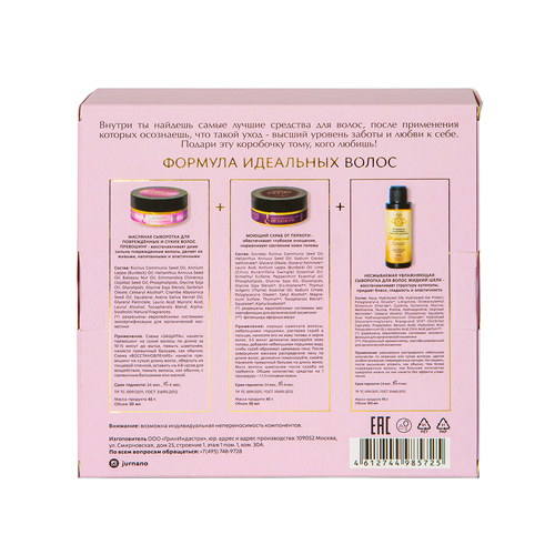 Цена без акции - 705 рублей. Внутри ты найдешь самые лучшие средства для волос, после применения которых осознаешь, что такой уход - высший уровень заботы и любви к себе. Подари эту коробочку тому, ко... Показать описаниего любишь! В состав набора входят: Продукты: Мини сыворотка-превошинг масляная для сухих и поврежденных волос, 50 мл,Мини-скраб моющий "Укрепляющий" для кожи головы, 50 мл,Сыворотка для волос "Жидкий кератин", несмываемая, 100 мл. Сашеты: Крем-концентрат для лица "Ультраувлажнение", для нормальной и сухой кожи, саше, 2 мл,Сыворотка несмываемая "Маникюр для волос", саше, 5 мл,Маска "Aqua matrix", для обезвоженной комбинированной кожи, саше, 5 мл,Пилинг для комбинированной и жирной кожи "Очистка пор", саше, 5 мл,Маска-скатка для чувствительной кожи, с голубой спирулиной, саше, 5 мл. Срок годности 24 месяца.