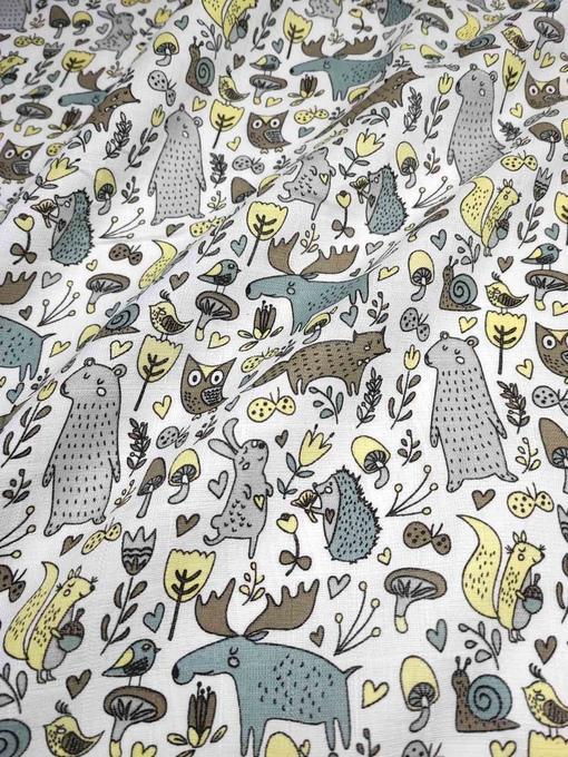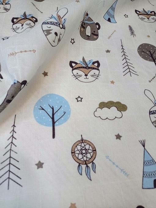 Муслин двухслойный цвет детский, рисунок лесные малыши