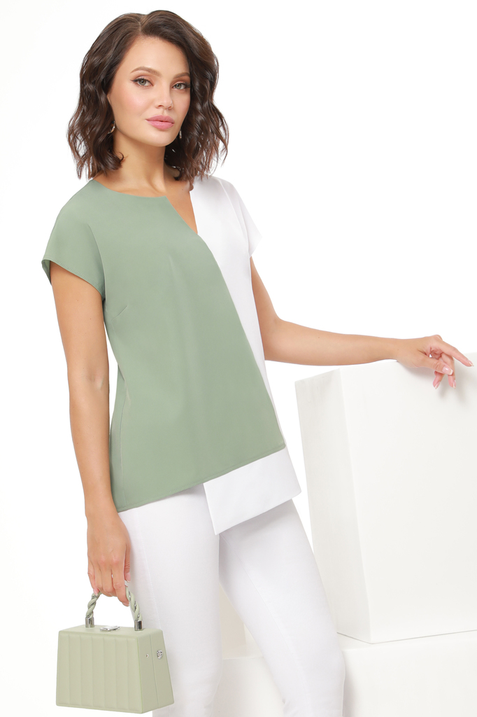 Блузка асимметричная бело-зеленая