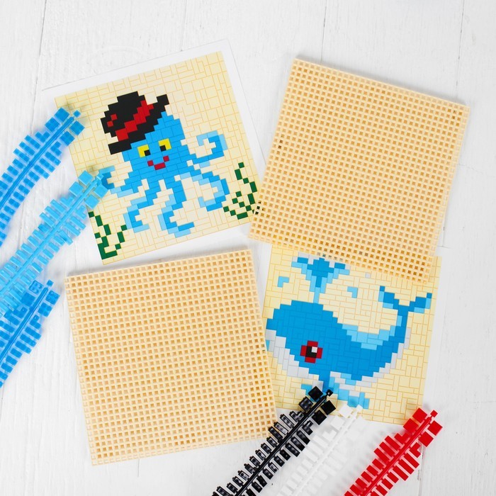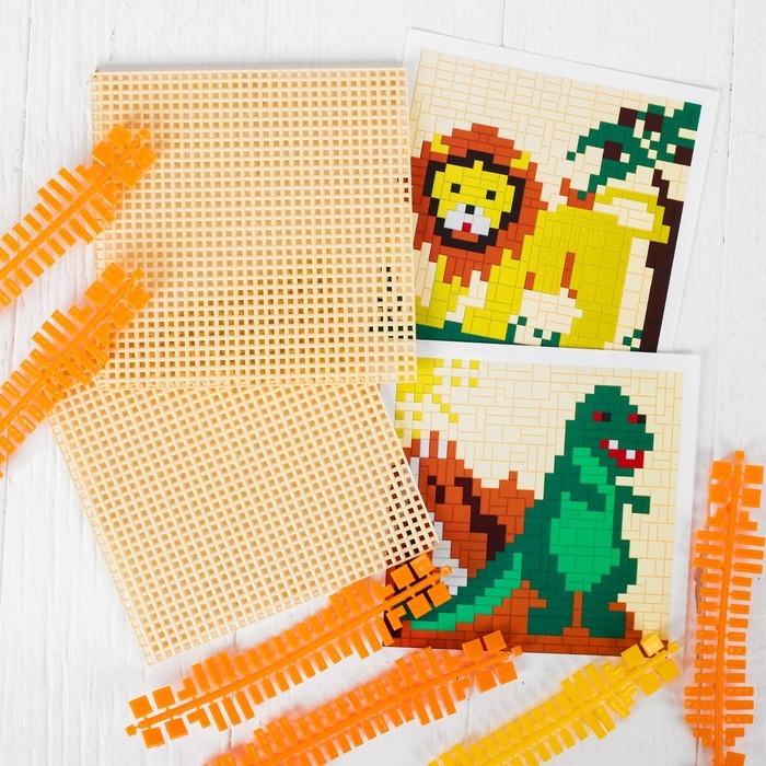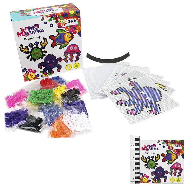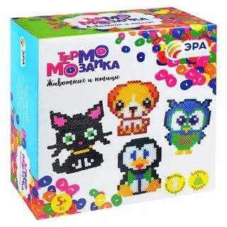 В наборе: - 2 игровых поля - фишки – 20 пакетов (11 цветов) - пергамент – 2 шт. - 4 красочные картинки - магнитная лента После сборки для закрепления мозаики необходимо через термобумагу прогладить ее... Показать описание утюгом. Материалы: пластмасса. Соответствует требованиям безопасности продукции. Для детей от 5-ти лет.