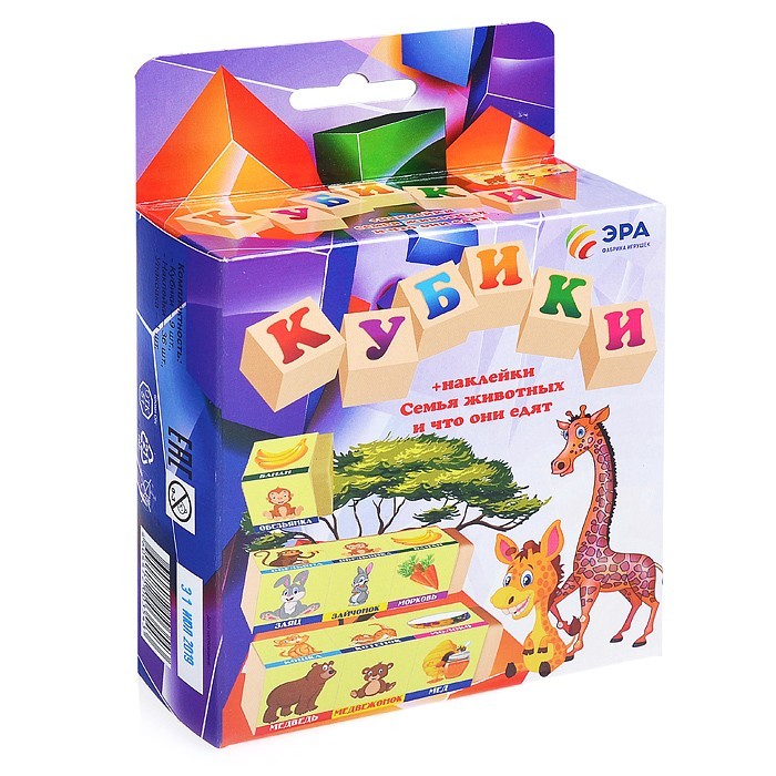 Комплектность: - 9 кубиков - 36 наклеек Материал: пластмасса. Соответствует требованиям безопасности и стандартам качества продукции. Для детей от 4-х лет.