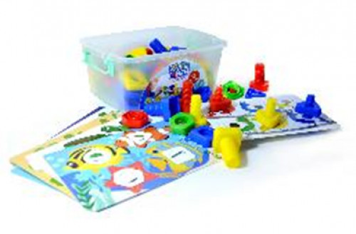 Представляем Вашему вниманию игровой набор включающий пластиковые детальки болтов и гаек большого размера и красочные картинки с отверстиями разного размера для правильного позиционирования соответств... Показать описаниеующей детальки. Данная игра направлена на распознавание и соотношение цветов и форм разного размера. Элементы легко соединяются между собой только в правильном сочетании: болт с треугольной шляпкой с треугольной гайкой, квадрат с квадратом и т.д. В карточках предусмотрены отверстия различного размера - под соответствующий вид деталей. Набор поможет вашему малышу развить зрительно-моторную координацию, образное мышление, усидчивость, воображение, познакомить с различными геометрическими фигурами. 2-6 лет