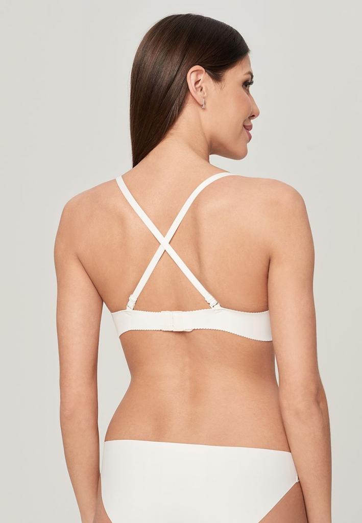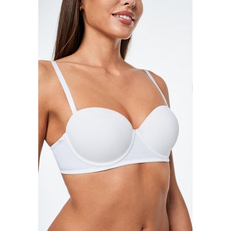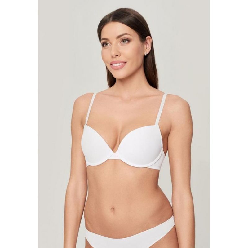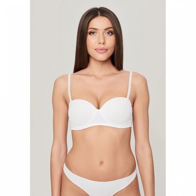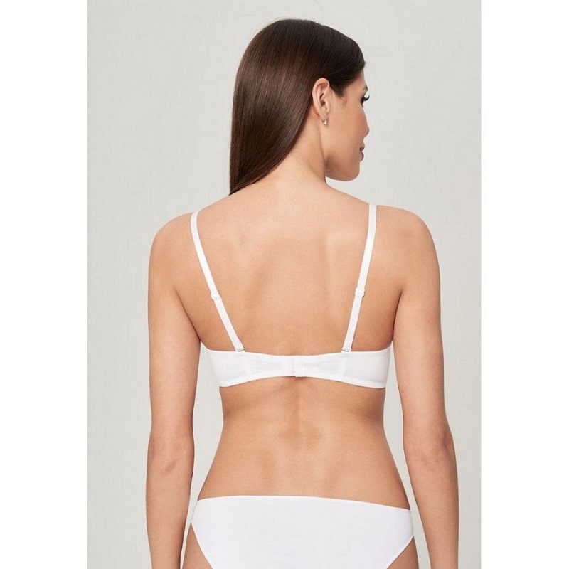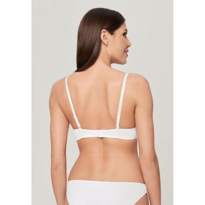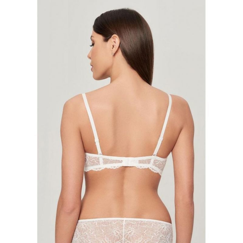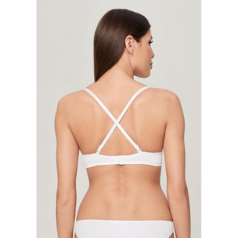 Белый бюстгальтер Lotus из эластичного полотна с формованной чашкой бандо с эффектом push-up. Съёмные регулируемые бретели можно застёгивать двумя способами: классическим и крест накрест на спинке.