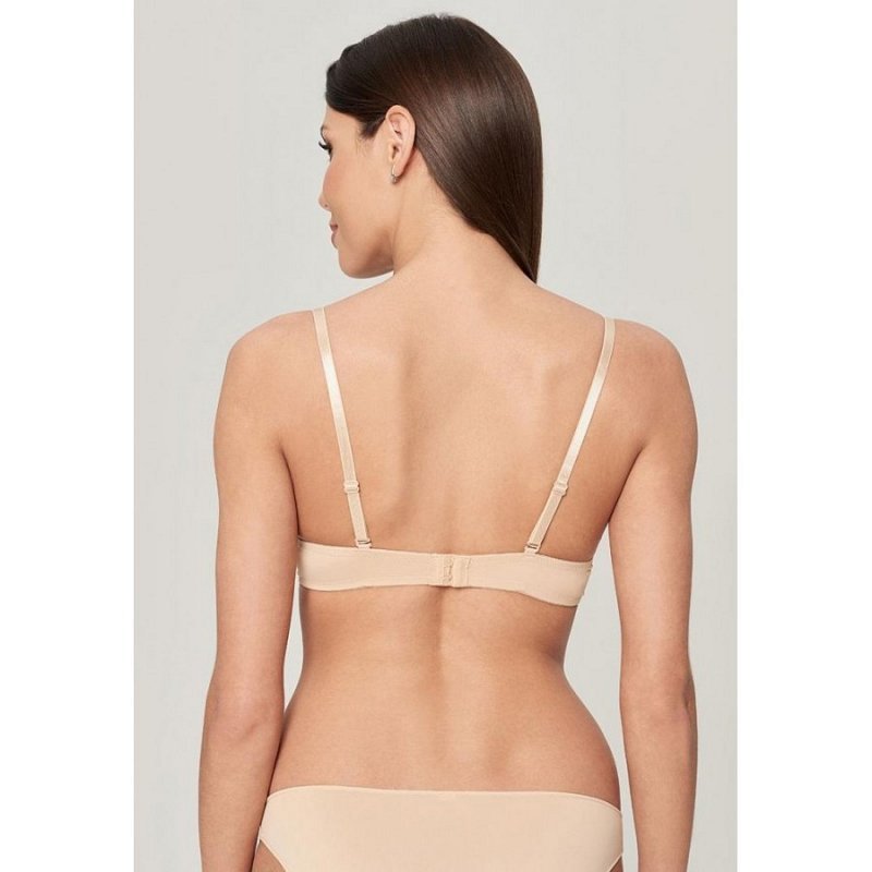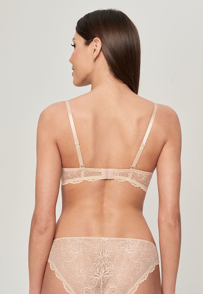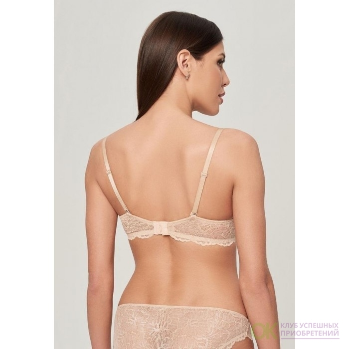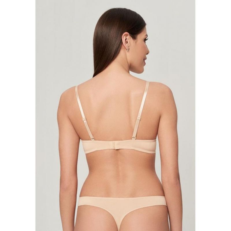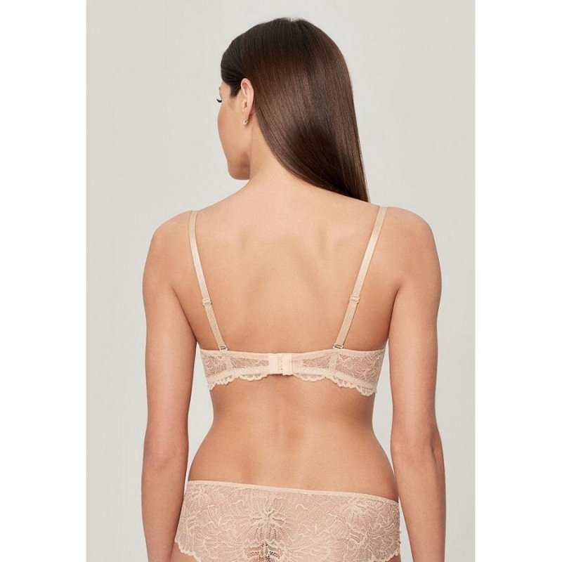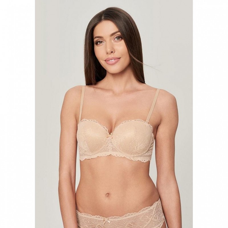 Бежевый бюстгальтер Lotus из эластичного полотна с формованной чашкой бандо с эффектом push-up. Съёмные регулируемые бретели можно застёгивать двумя способами: классическим и крест накрест на спинке.