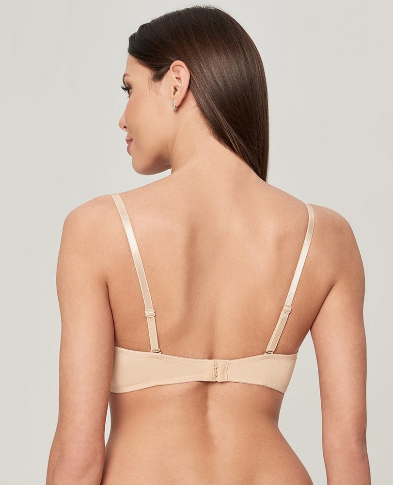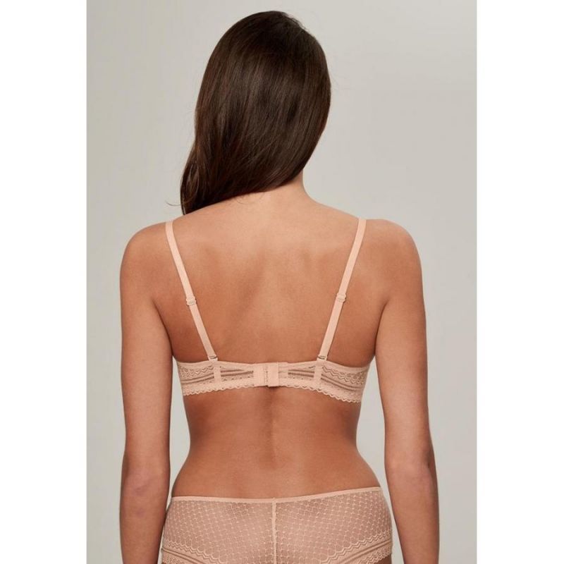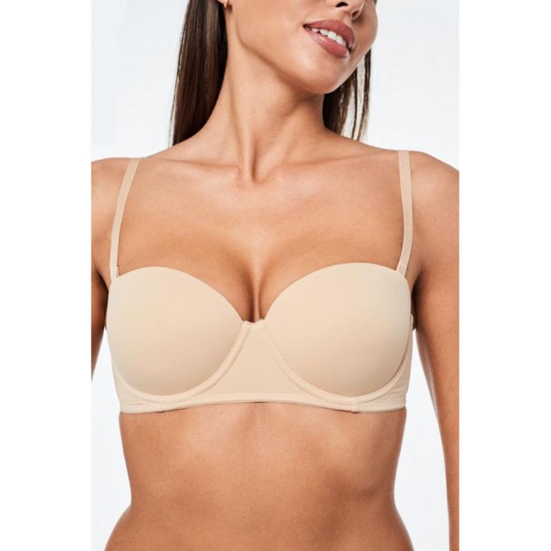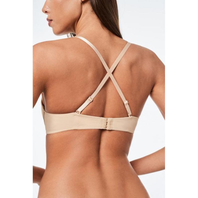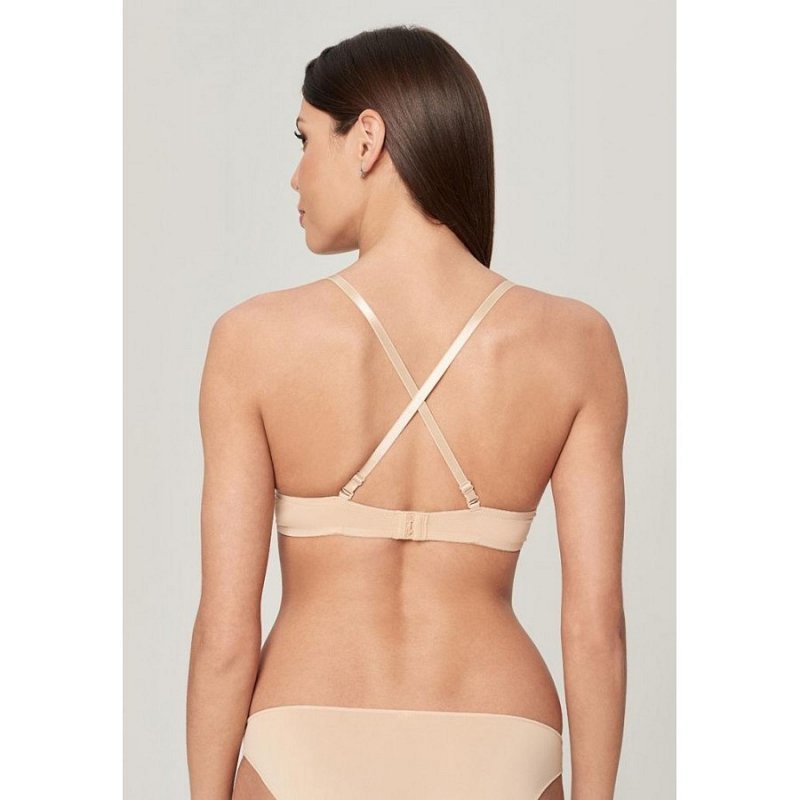 Бежевый бюстгальтер Lotus из эластичного полотна с формованной чашкой бандо с эффектом push-up. Съёмные регулируемые бретели можно застёгивать двумя способами: классическим и крест накрест на спинке.