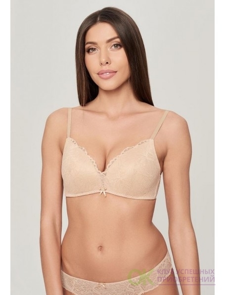 Бежевый бюстгальтер Orchid из кружева с формованной треугольной чашкой без каркасов super push-up во всех размерах. Регулируемые бретели можно застёгивать двумя способами: классическим и крест накрест... Показать описание на спинке. Декорирован бантиком спереди.