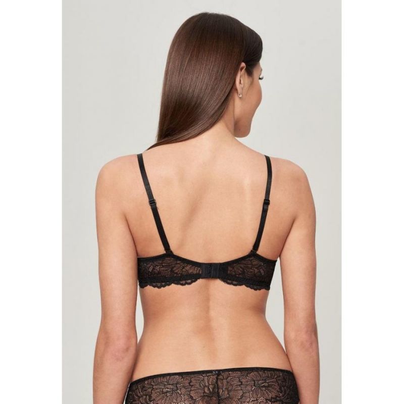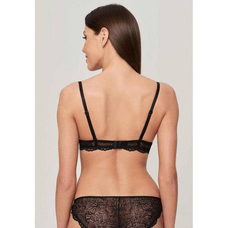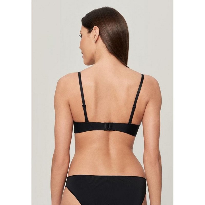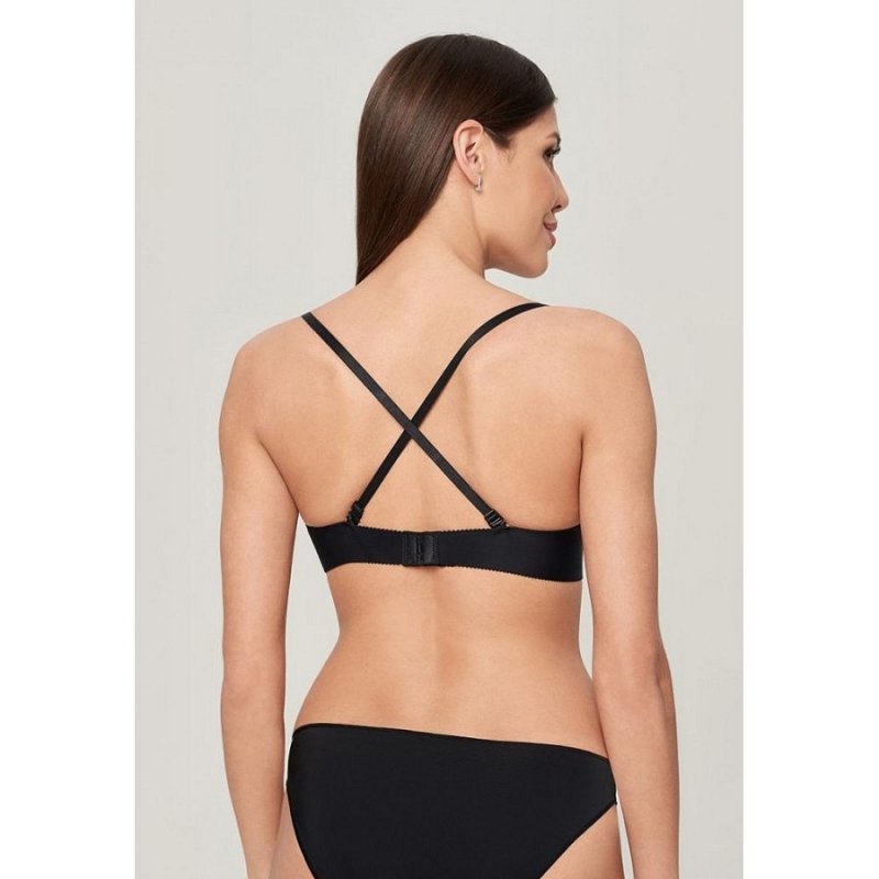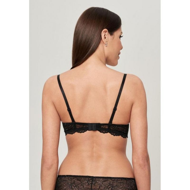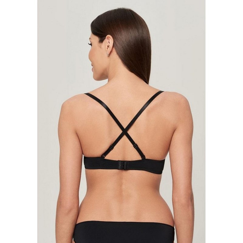 Чёрный бюстгальтер Lotus из эластичного полотна с формованной чашкой бандо с эффектом push-up. Съёмные регулируемые бретели можно застёгивать двумя способами: классическим и крест накрест на спинке.