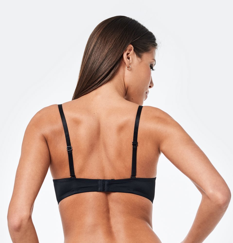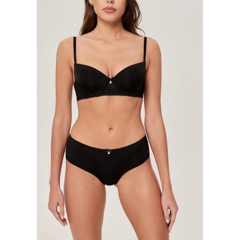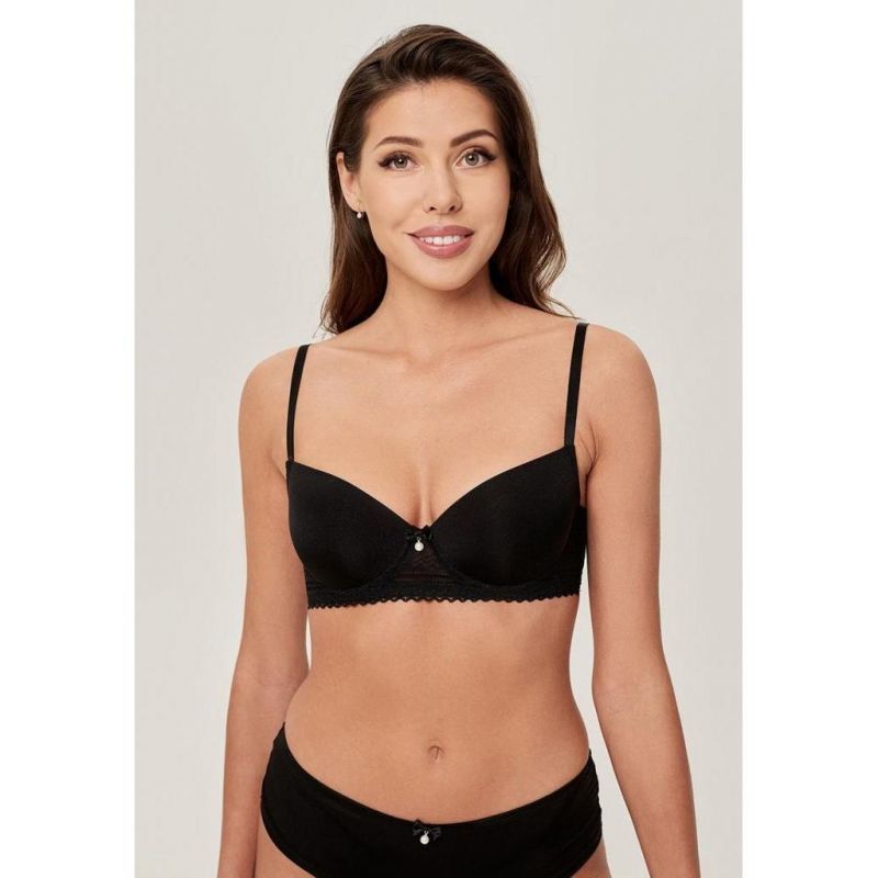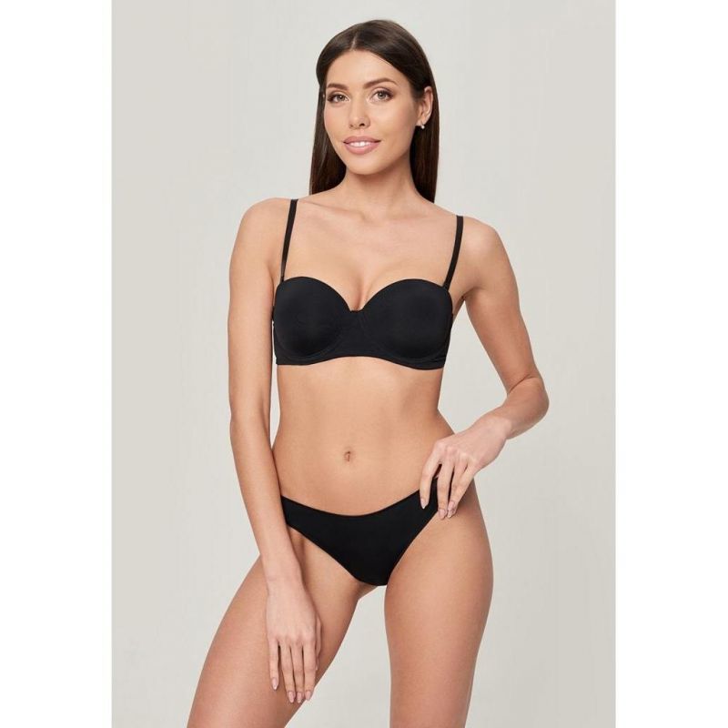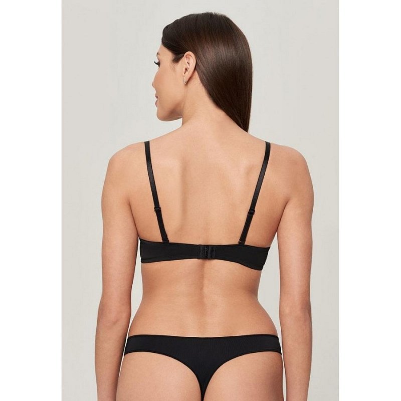 Чёрный бюстгальтер Lotus из эластичного полотна с формованной чашкой бандо с эффектом push-up. Съёмные регулируемые бретели можно застёгивать двумя способами: классическим и крест накрест на спинке.