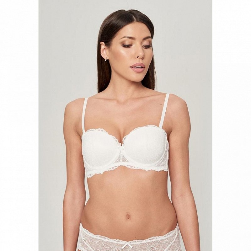 Бюстгальтер Orchid белого цвета из кружева с формованной чашкой бандо с эффектом push-up. Съёмные регулируемые бретели можно застёгивать двумя способами: классическим и крест накрест на спинке. Декори... Показать описаниерован бантиком спереди.