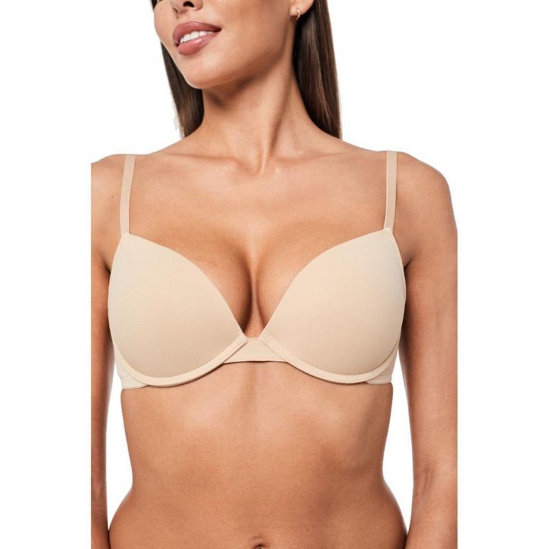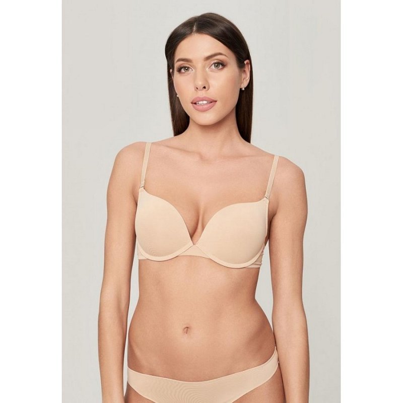 Бежевый бюстгальтер Lotus из эластичного полотна с формованной чашкой с эффектом super push-up во всех размерах. Регулируемые бретели можно застёгивать двумя способами: классическим и крест накрест на... Показать описание спинке.