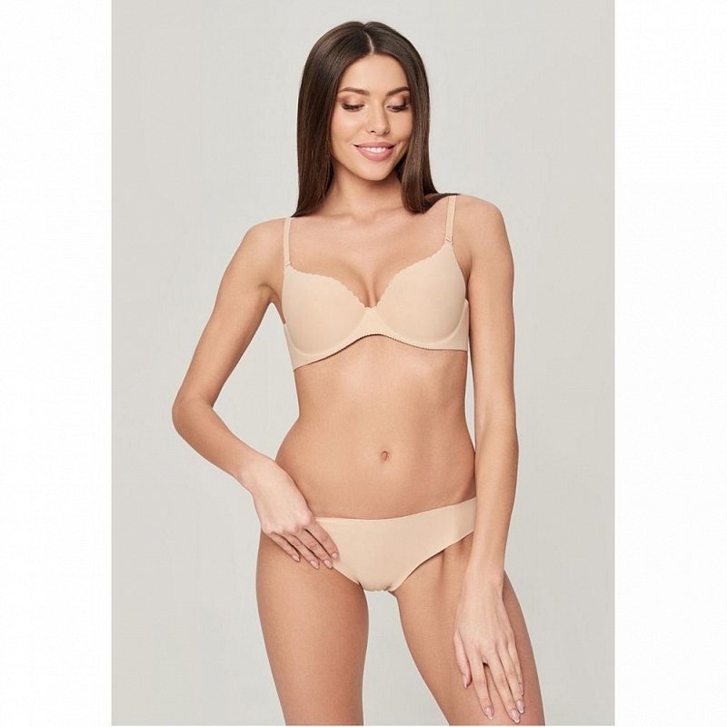 Бесшовный бюстгальтер Peony бежевого цвета с формованной чашкой балконетт с эффектом push-up во всех размерах. Съёмные бретели можно застёгивать двумя способами: классическим и крест накрест. Незамете... Показать описаниен под одеждой.