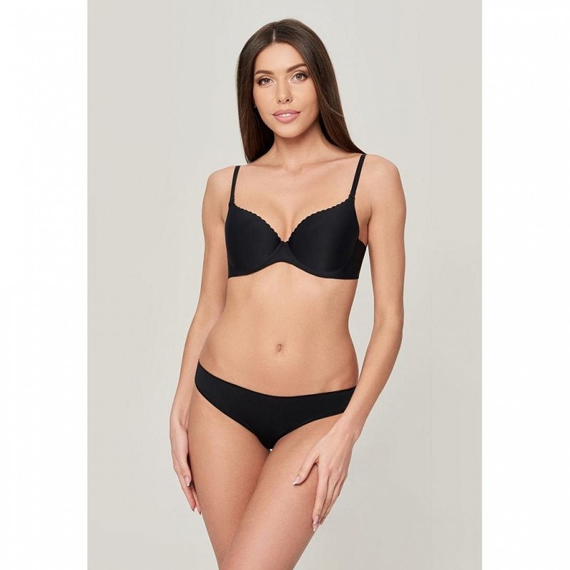 Бесшовный бюстгальтер Peony чёрного цвета с формованной чашкой балконетт с эффектом push-up во всех размерах. Съёмные бретели можно застёгивать двумя способами: классическим и крест накрест на спинке.... Показать описание Незаметен под одеждой.