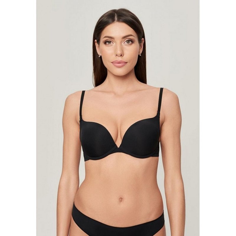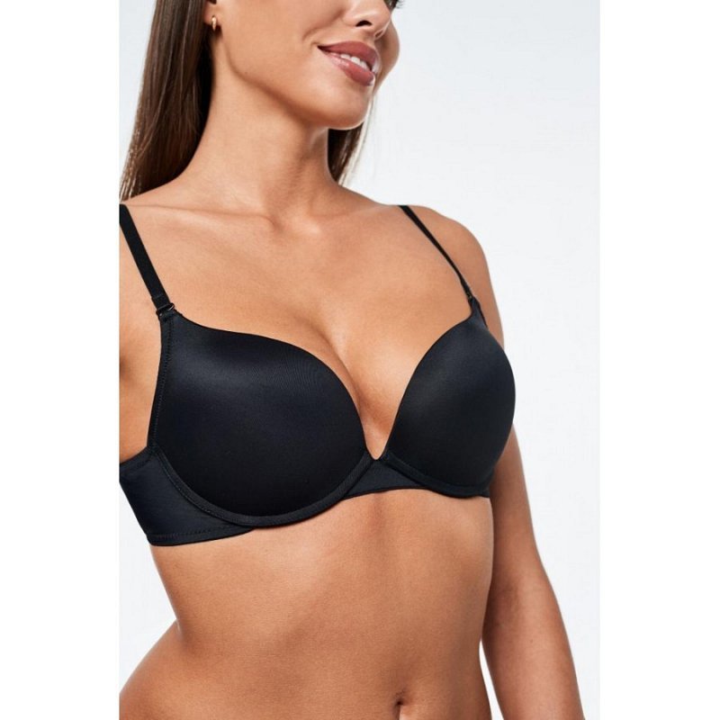 Черный бюстгальтер Lotus из эластичного полотна с формованной чашкой с эффектом super push-up во всех размерах. Регулируемые бретели можно застёгивать двумя способами: классическим и крест накрест на ... Показать описаниеспинке.