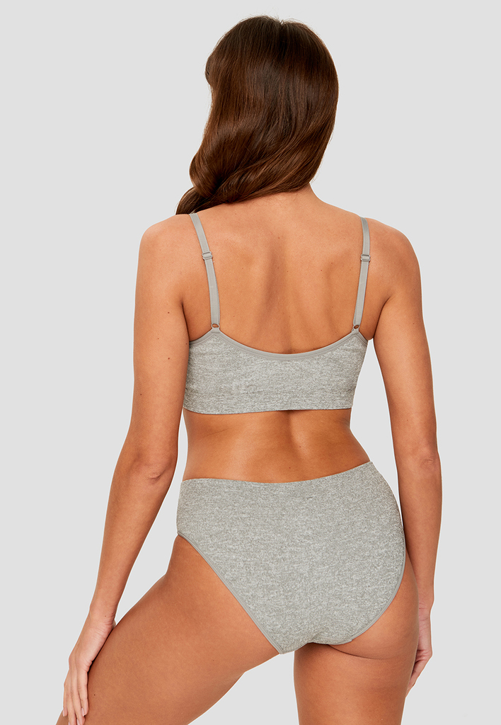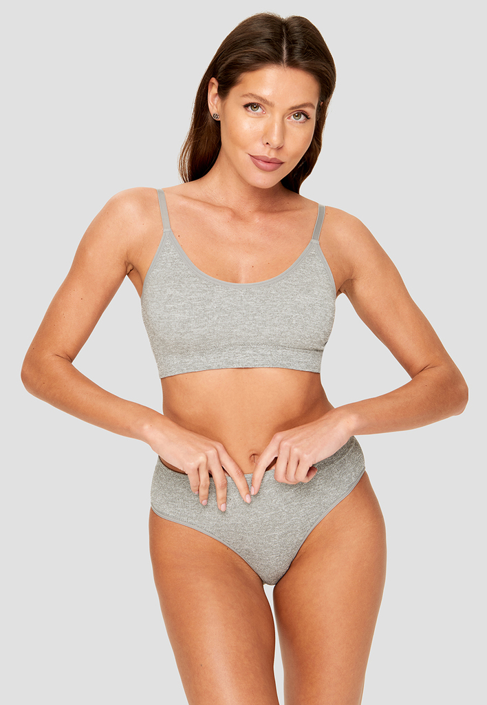 Нежное и лаконичное - идеальное бесшовное бельё на каждый день и для занятий спортом. Базовый серый оттенок легко комбинируется с любым гардеробом. Бюстгальтер выполнен из трендового материала в рубчи... Показать описаниек (резинка риб). Эластичная подкладка невероятно приятна телу и сохраняет комфорт. Мягкие эластичные края не оставляют следов на коже. Мягкая чашка без косточек дополнена съемными формованными вкладышами. Это позволяет значительно продлить срок службы белья при стирке. Тонкие регулируемые бретели, лента под грудью и эластичный материал обеспечивают оптимальную посадку и поддержку. Отсутствие застежки — еще один плюс в копилку комфорта. Осторожно, белье настолько комфортное, что вы можете забыть, что надели его!