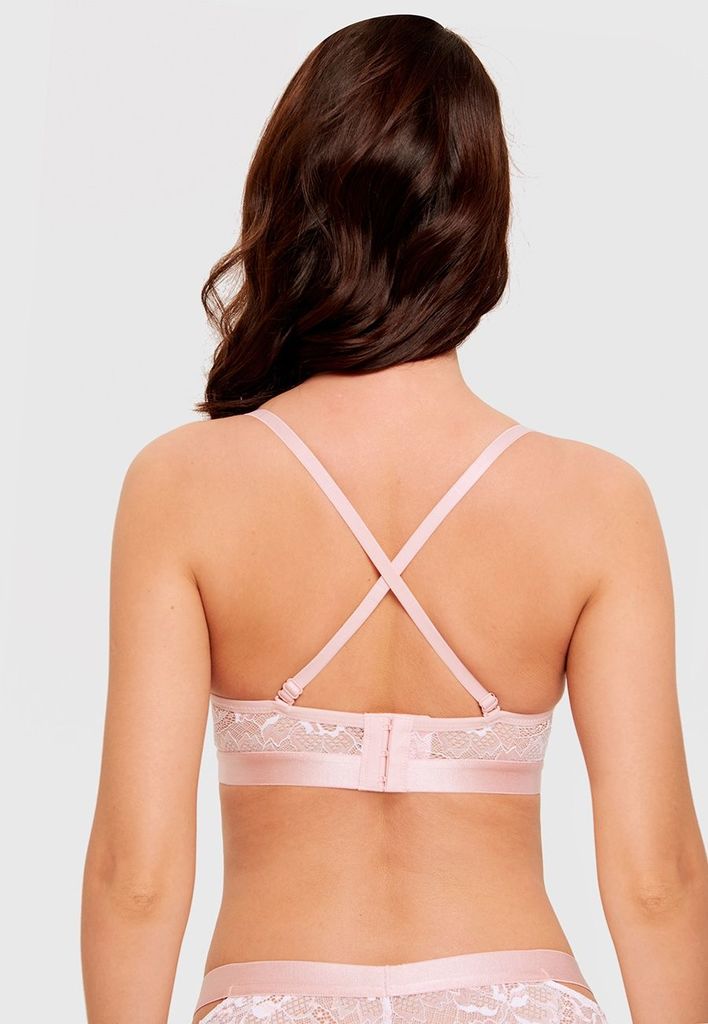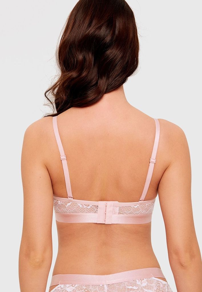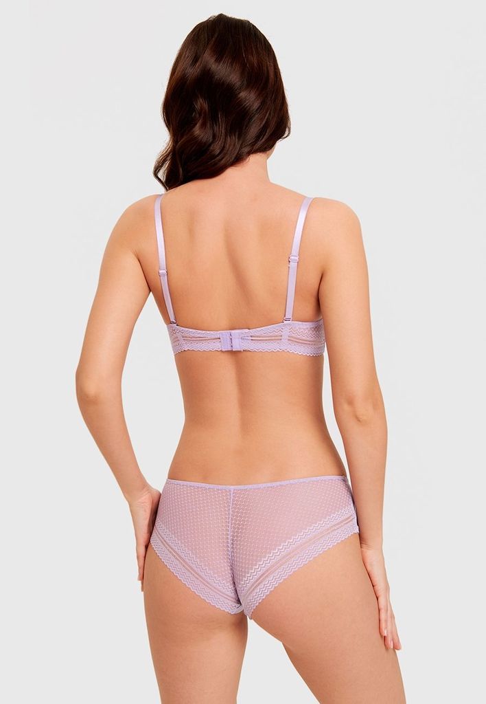 Комфортное бельё, которое умеет соблазнять. Бюстгальтер-топ выполнен из приятного телу эластичного материала и мягкого кружева с оригинальным геометрическим узором. Мягкие чашки из сшитого поролона бе... Показать описаниез косточек и без push up подчеркивают естественную красоту груди и сохраняют комфорт. Регулируемые бретели, широкая полоска под грудью и застежка на з крючка обеспечивают оптимальную посадку.