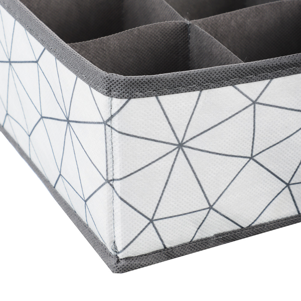 Удобный органайзер с 5 отделениями для хранения одежды и других небольших предметов. Органайзер выполнен из качественного, прочного и при этом дышащего материала. Усиленные боковые стенки не прогибают... Показать описаниеся и прекрасно держат форму, общее пространство разделено на 5 секций, что позволяет грамотно организовать пространство. Размер 33х16,5х10 см. Органайзер удобно располагается в шкафу, на полке или стеллаже. Теперь любая мелочь будет под рукой и в быстром доступе. Благодаря стильному дизайну короб красиво смотрится в интерьере комнаты.