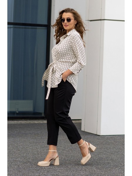 Доступно к заказу: AbbiПроизводитель: БеларусьСтрана производства: 964622Артикул: 52 - 56Размеры: Хлопок 72%, вискоза 26%, эластан 2%Материал: Весна, ЛетоБрюки женские, свободного кроя. Слегка заужены... Показать описание к низу, покроя оверсайз. Прорезные карманы в боковых швах. Притачной пояс с эластичной тесьмой. По низу брюк декоративные вытачки придающие зауженный силуэт. Застежка на 2 пуговицы и молнию с цельнокроеным гульфиком. Так же можно приобрести жакет артикул 6001 Abbi или комплектом арикул 5004 Abbi.Брюки функциональный предмет современного женского гардероба! Они прекрасно вписываются в школьную форму и станут любимой вещью модницы. Это те достоинства нашей модели. Носите их можно с блузкой, жакетом, джемпером или просто с майкой. Прекрасно сочетаются с нарядной и летней для свидания и на вечеринку или в театр а также для отдыха с друзьями или вечернего выхода на свадьбу и на Новый год. Они прекрасно впишутся в пляжный спортивный и праздничный образ. брюки женские классические с высокой посадкой помогут вам собрать стильный образ. Как и брюки палаццо с завышенной талией которые вы найдете в магазине Abbi отлично сочетаются со строгими рубашками, летними топами, утонченными блузами, объёмными толстовками и свободными футболками. Штаны женские отлично подойдут для высоких женщин и для девочек больших размеров, в школу, офис. У нас: брюки для беременных, женские, одежда женская, штаны, летние, для женщин, утепленные, в клетку, джогеры, больших размеров, классические, для девочек, джоггеры, широкие, зимние, домашние, теплая, теплые, клеш, для девушки, на флисе, чиносы, палаццо, клетчатые, для девочки.Замеры:Рост фотомодели – 170 см., Размер фотомодели – 48., ОТ-объем талии; ОБ-обьем бедер; ДИ-длина изделия.Размер 50.ОТ-76; ОБ-104 ; ДИ- 107Размер 52.ОТ-80; ОБ-108 ; ДИ-107Размер 54.ОТ-84; ОБ-112 ; ДИ-107Размер 56.ОТ-88; ОБ-116 ; ДИ-107Размер 58.ОТ-92; ОБ-120 ; ДИ- 107Размер 60.ОТ-96; ОБ-124 ; ДИ- 107