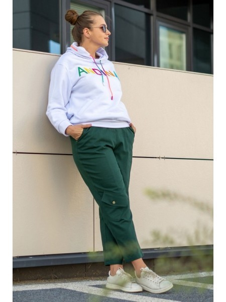 Доступно к заказу: AndinaПроизводитель: БеларусьСтрана производства: 918005Артикул: 44 - 54Размеры: 170 смРост: Хлопок 72%, ПЭ 26%, эластан 2%.Материал: КруглогодичныйБрюки женские повседневные прямог... Показать описаниео силуэта, на притачном поясе со шлевками, с подвеской на карабине, с застёжкой на тесьму-молнию в переднем шве, с отделочными строчками белого цвета. Передние половинки с застроченными кантами, с боковыми наклонными карманами. Задние половинки с отрезными кокетками, с накладными фигурными карманами. Низ брюк с широкой подгибкой.Длина изделия 108 см.