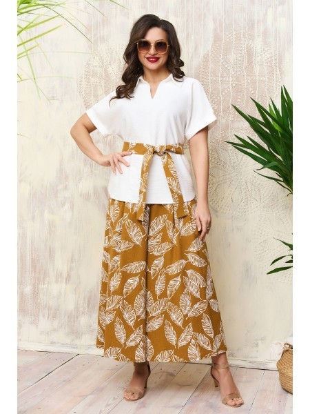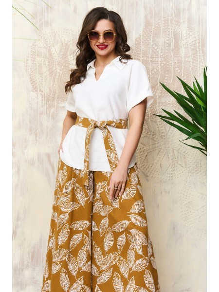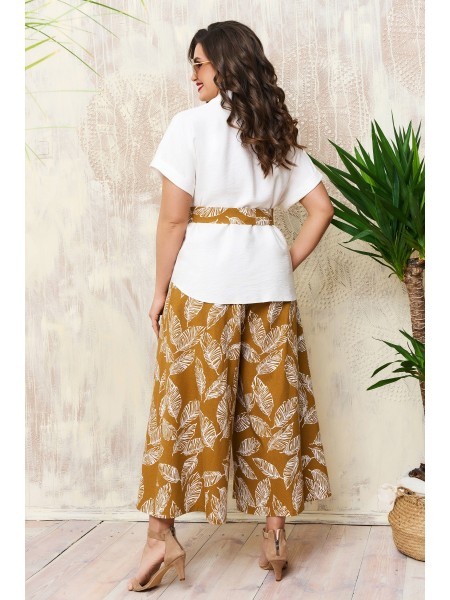 Доступно к заказу: AGATTIПроизводитель: БеларусьСтрана производства: 964959Артикул: 46 - 54Размеры: 164 смРост: Лён 50%, хлопок 25%, вискоза 25%Материал: Весна, ЛетоСтильный женский комплект, состоит ... Показать описаниеиз блузки и кюлот.Блуза прямого силуэта, выполнена из натуральной ткани с добавлением хлопка, льна и вискозы (мнется не сильно, за счет добавления вискозы), горловина блузки с воротником-стойкой и небольшим V-образным вырезом. Рукав блузки цельнокроеный с манжетой.Кюлоты выполнены из натуральной льняной ткани с добавляем хлопка и вискозы. Кюлоты на поясе с застежкой на пуговицы и молнию, в боковых швах функциональные карманы. В комплект входит съемный пояс из основной ткани. Модель удобная и практичная, отлично подойдет для ежедневной носки в жаркое время, вы будете выглядеть неотразимо.