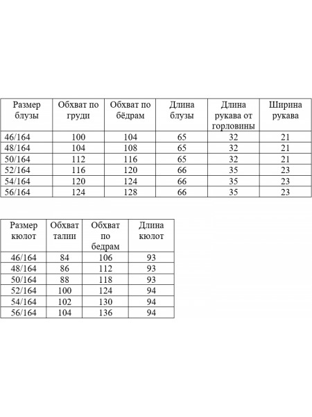 Доступно к заказу: AbbiПроизводитель: БеларусьСтрана производства: 965081Артикул: 46 - 52Размеры: Вискоза 100%Материал: Весна, ЛетоКомплект женского кимоно брюки и жакет - отличный выбор для тех, кто ... Показать описаниеуважает стиль, комфорт и удобство. Изготовленный из легкой вискозной ткани, верх кимоно имеет свободный силуэт, проймы спущены и выполнена стойка в цельнокроеном стиле. Рукава три четверти с широкими манжетами создают потрясающе изящный вид. Тонкие внутренние пояски на талии обеспечивают удобство и возможность сделать широкий пояс для дополнительного регулирования.Классические брюки в стиле палаццо удобно располагаются на резинке, а область резинки имеет три отделочные строчки для лучшей посадки на талии. Этот брючный костюм женские праздничные идеально подходит для летнего офиса, а также вечерних мероприятий. Это непревзойденный вариант для женщин, которые следят за своим стилем. Нотки турецкого стиля от нашего дизайнера в женском летнем костюме созданы специально для наших очаровательных модниц, в ритме современных тенденций. В отличии от костюма с юбкой, он сочетает в себе японское наследие и современный турецкий дизайн. Женский брючный комплект кимоно вы получаете, дизайнерский костюм, кимоно с длинными рукавами и широкими брюками, выполненными из легкой ткани, которая не сковывает движения в жаркую погоду. Комфортная и элегантная одежда для повседневной носки или для посещения пляжа. Универсальный костюм, который можно носить как деловой, так и нарядный стиль. Широкий выбор размеров и цветов позволит выбрать идеальный вариант именно для вас. Оригинальность и стиль - гарантированы. Не упустите свой шанс стать обладательницей этого модного женского кимоно комплекта на лето!Замеры:ОГ-обхват груди; ОТ-обхват талии; ОБ-обхват бедер; ДИ-длина изделия; ДР-длина рукава; ДИВ-длина изделия внутренний шов; ШБ-ширина брючин.Размер 44.ОГ-100; ОТ-84; ОБ-102; ДИ-75,5; ДР-50.ОТ-62 ; ОБ-102; ДИ-106; ДИВ-76; ШБ-59.Размер 46.ОГ-104 ; ОТ-88; ОБ-106; ДИ-76; ДР-50.ОТ- 66; ОБ-106; ДИ-106
