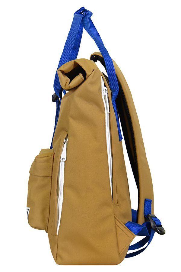 Товарная группа: Рюкзак. Бренд: 8848. Модель: 030-041-013 Ролл-топ 35x11x25 см. ЦВЕТ: ярко-бежевый с синими ручками. ОПИСАНИЕ: Продукцию бренда 8848 можно смело назвать премиальной, ведь она сочетает ... Показать описаниев себе высокое качество материалов и продуманный до мелочей дизайн.. Компактный городской рюкзак-сумка со складной верхушкой, изготовленный из плотного полиэстера. Отлично подходит для повседневного использования в городской среде.. Вес: 450 г.. Объём: 13 л. (в развёрнутом состоянии). Водоотталкивающая ткань. Прочная непромокаемая ткань. Основное отделение на липучке. Складная верхушка на застёжке "фастекс". Приятная подкладка из полиэстера. Карман для ноутбука (макс. диагональ 13 дюймов). Дополнительное отделение на молнии сбоку. Карман на молнии спереди. Один боковой карман. Молния на спинке для быстрого доступа к основному отделению. Регулируемые лямки с сеткой для вентиляции. Удобная ручка для переноски. Материал: 100% полиэстер. Страна производства: КНР. 35 см 11 см 25 см