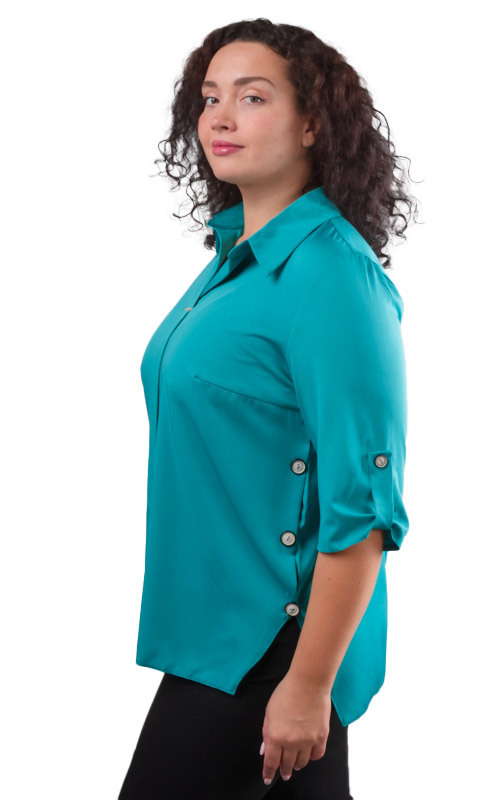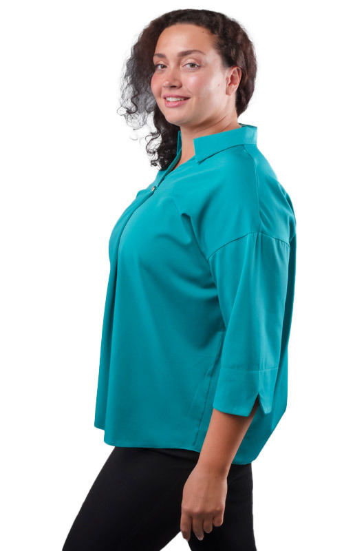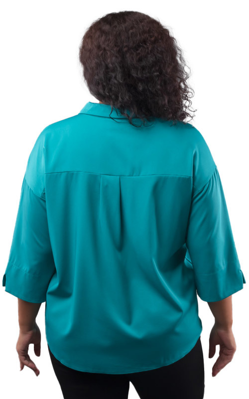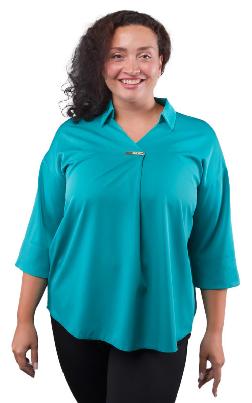 Состав: 100% полиэстер. Сезон: Круглогодично. Производитель: Киргизия. Фактура материала: Гладкая. Тип карманов: Без карманов. Тип рукава: 3/4. Особенности модели: Полномерная. Вид горловины: V-образн... Показать описаниеый отложной. Покрой: Прямой. Рисунок: Однотонный. Вид застёжки: Без застёжки. Цвет: Морская волна. Размер: 52 Блузка женская, стильная, однотонная, выполнена из мягкой струящейся ткани. Модель представлена в богатой цветовой гамме. Блузка свободного кроя, выполнена с застроченной складкой на груди. Она абсолютно не сковывает движений и подойдет для женщин любой комплекции. Складка создает вертикаль, стройнит и зрительно вытягивает образ. Рукав 3/4, со спущенным швом и разрезами по бокам. Вырез горловины V-образный с отложным воротничком. Низ фигурный. Модель блузки отлично подойдет на любой тип фигуры и на любой рост. Универсальная базовая модель на любой сезон, прекрасно подойдет как для офиса, так и для торжественного мероприятия. Элегантная блузка станет неотъемлемой частью Вашего образа.