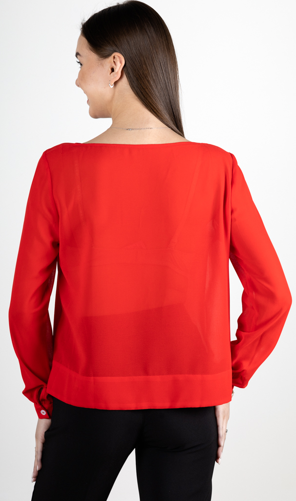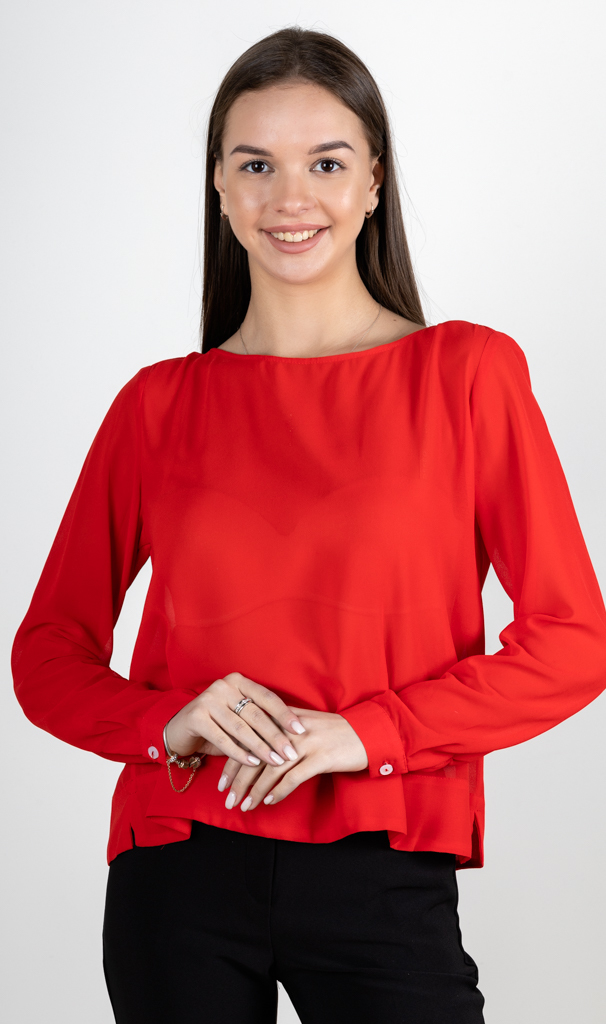 Состав: 100% полиэстер. Сезон: Круглогодично. Производитель: Киргизия. Тип рукава: Длинный. Вид застёжки: Пуговица. Цвет: Красный. Размер: 46