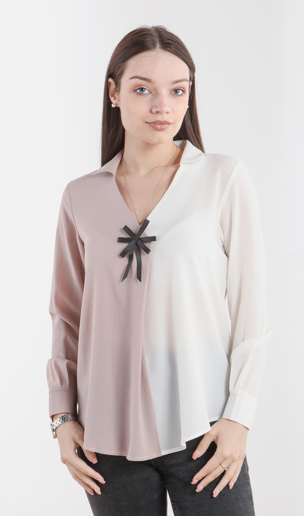 Блузка женская с плиссированным воротником 253102, размер 42,44,46,48