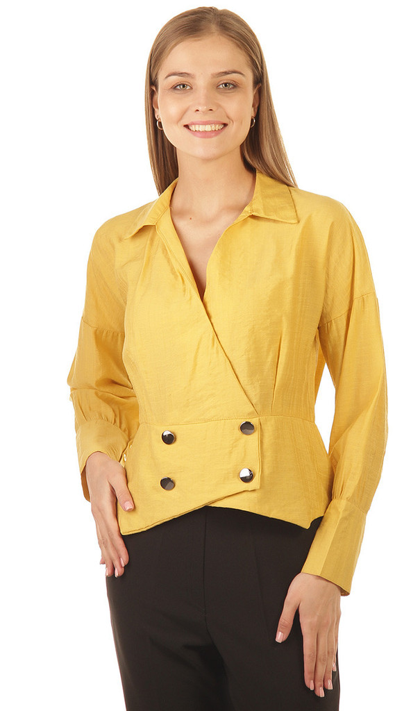 Состав: 100% полиэстер. Сезон: Круглогодично. Производитель: Киргизия. Тип карманов: Без карманов. Тип рукава: 3/4. Вид горловины: Рубашечный. Покрой: Свободный. Рисунок: Однотонный. Вид застёжки: Без... Показать описание застёжки. Цвет: Горчичный. Размер: 50