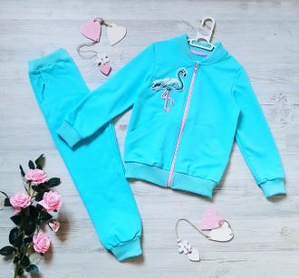 Необычайно красивыйкостюм для девочек просто обязан занять свое прочное место в гардеробе вашего ребенка. Модель включает в себя две вещи: Бомбер и брючки. Сшит из натурального, экологически чистого х... Показать описаниелопка, плотной вязки. Полочка декорирована пришивной аппликацией " Фламинго ", с 86-104 размер- замена аппликации, меньшей по размеру (аппликация может отличаться). Материал: футер с лайкрой