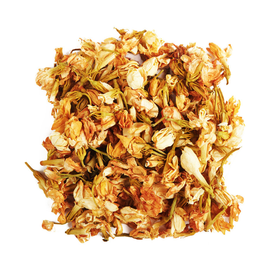 Премиальные цветы жасмина. В сухом виде крупные, аккуратные ароматные цветы нежно кремового цвета. Аромат мягкий, тонкий, горьковато-жасминовый, при заваривании усиливается и становится более изысканн... Показать описаниеым. Жасминовый чай – напиток, дошедший до нас благодаря своим особым свойствам. Аромат жасмина успокаивает и вдохновляет. Жасмин чистит печень, прогревает лёгкие, повышая температуру тела. В составе зелёного чая, жасмин подчёркивает его вкус, дополняя его нежным цветочным ароматом. В чай добавляется в пропорции 1 г на 3-5 г чайной заварки или по вкусу.
