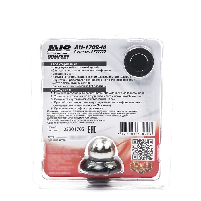 Держатель магнитный AVS AH-1906-M, для сотовых телефонов, блистер Вопросы по товару