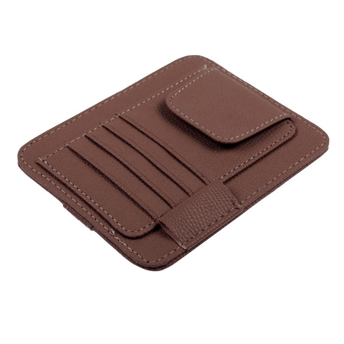Узкий органайзер на солнцезащитный козырек авто. Нужный инструмент в наборе автомобилиста, поскольку, позволит навести порядок в салоне. Органайзер для хранения легко устанавливают на козырьки в авто,... Показать описание имеет регулируемую застежку с универсальным размером, подойдет в любое авто. Не закрывает обзор водителю и если у Вас есть зеркало, не помещает его использовать. Органайзер на козырек автомобиля может использоваться как: картхолдер, визитница для пластиковых карт и карточек, чехол для пропуска, отделение для телефона, крепление для ручки, хранения денег или других документов на машину, очков. Цвет: коричневый. Материал: искусственная кожа. Место установки: на солнцезащитный козырёк. Назначение: для мелочей. Состав: кожзаменитель. Размеры товара: 12.5/1/15.5. Примечание: выбор конкретных цветов и моделей не предоставляется. на фотографиях могут быть представлены не все варианты.