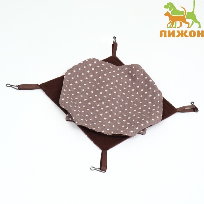Грызунам необходимо местечко для отдыха, где они будут чувствовать себя защищенными. Обратите внимание на то, что многие грызуны любят грызть ткань. Перед покупкой тканевых изделий для хомяков, совету... Показать описаниеем предварительно провести тест на прогрызание ткани вашим питомцем. Подвесной дом для грызунов, крыс, мышей, хомяков надолго обеспечит вашего маленького питомца теплом и уютом. Этот закрытый гамак с утеплённым дном для грызунов станет укромным местом для отдыха и досуга питомца. Цвет: коричневый. Материал: текстиль. Вид: гамаки. Состав: бязь, флис.