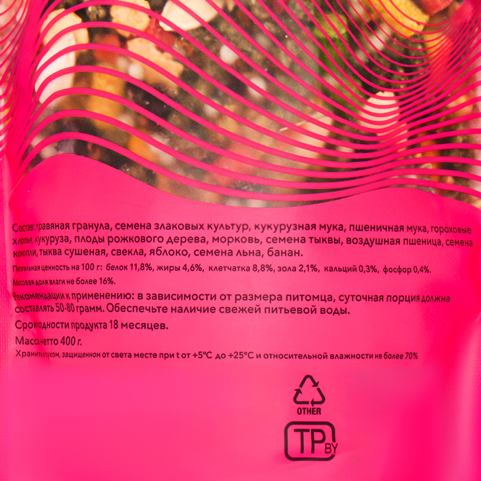 Вес, г: 400. Тип корма: основной. Вид: смесь. Назначение: для морских свинок. Возраст: для всех возрастов. Темпер. ограничение НЕ НИЖЕ ?: +1. Темпер. ограничение НЕ ВЫШЕ ?: +30. Состав: см. на упаковк... Показать описаниее. Примечание: хранение и транспортировка при температуре от +1 °c до +30 °c.