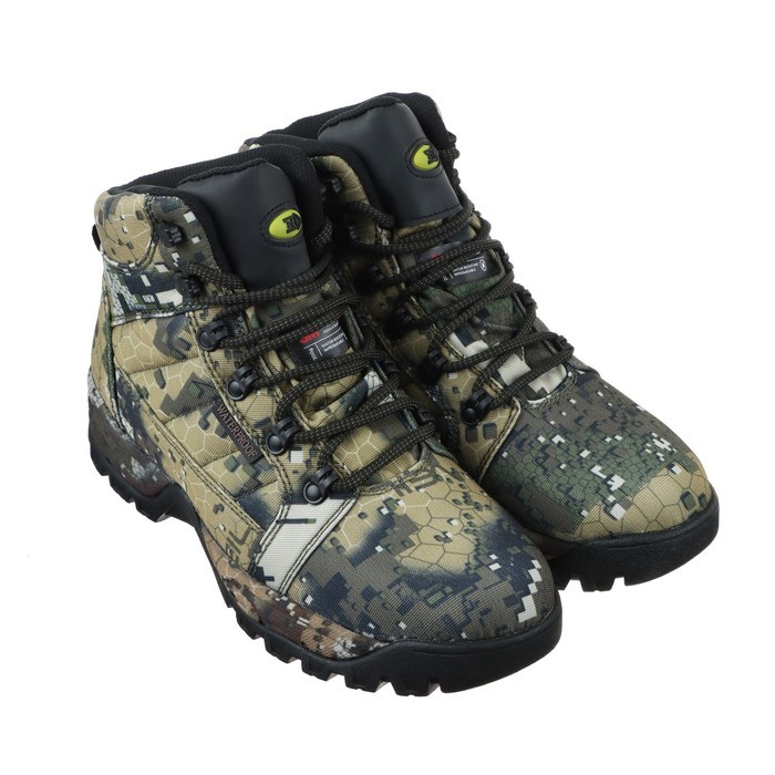 Мембранные ботинки WANNGO- это комфортная обувь для охоты, рыбалки, треккинга и хайкинга, на зиму, осень и весну. Материал верха OXFORD плотностью 1000D за счет особого плетения и пропитки отталкивает... Показать описание воду и грязь. Трикотажная сетчатая подкладка с мембраной WG-TEX выводит лишнюю влагу из ботинка и позволяет ноге "дышать, обладает паропроницаемостью и обеспечивает сбалансированный комфорт внутри обуви. Вкладная ортопрофилактическая стелька DUOS UP INSOLE имеет анатомическое строение и боковую поддержку для стопы. Ботинки имеют хорошую защиту от скольжения благодаря резиновому протектору и рассчитаны на уверенное движение по любой поверхности. Цвет: камуфляж. Для кого: унисекс. Размер обуви: 41. Сезон: демисезон. Материал стельки: эва. Материал стельки: текстиль. Вид застёжки: шнуровка. Материал подкладки: трикотаж. Материал подкладки: мембрана. Температурный режим: от -15 до +10 °c. Материал верха: оксфорд. Материал подошвы: резина. Материал подошвы: эва. Особенность: мембрана. Состав: резина, текстиль, эва. Примечание: у товара универсальное фото. При выборе ориентируйтесь на информацию в наименовании и характеристиках."