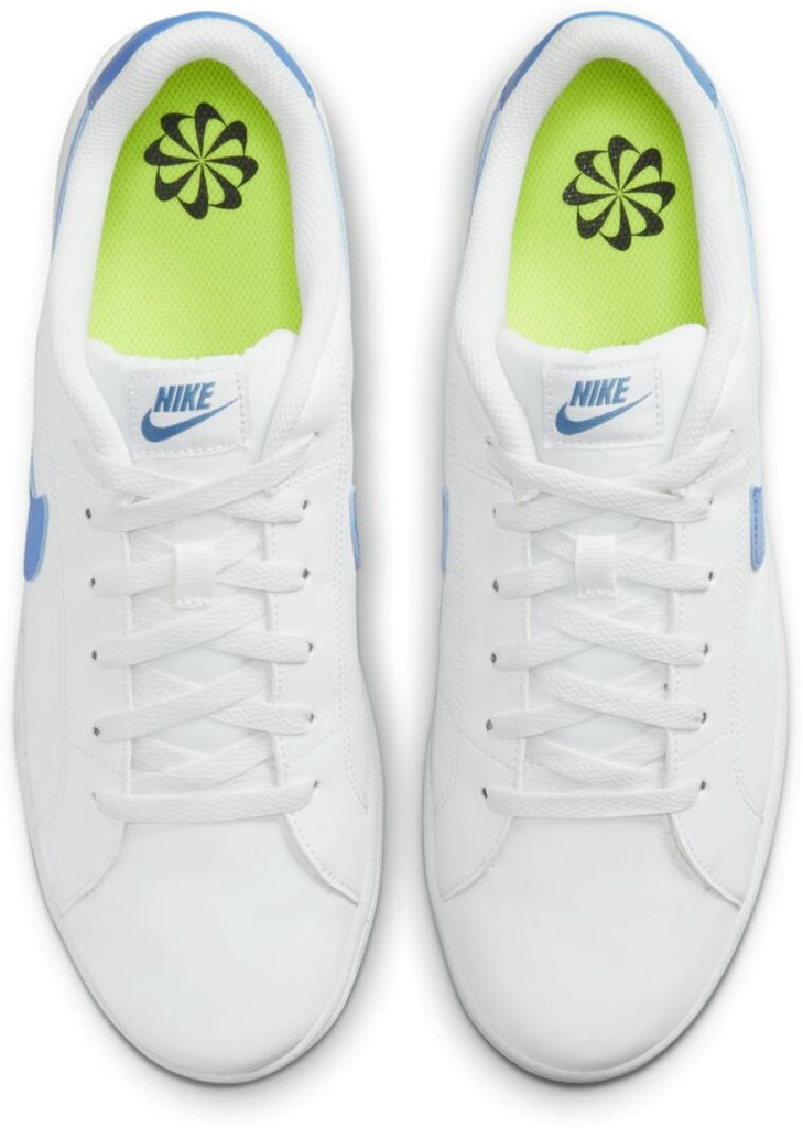 Больше картинок (информации) и таблица размеров на странице. ТЕННИСНЫЙ ОБРАЗ В РЕТРОСТИЛЕ. Встречай популярную модель прошлых лет в современном исполнении. Модель Nike Court Royale 2 Next Nature содержит не менее 20% переработанных материалов. Удобный верх из гладкого синтетического материала. Крупный логотип Swoosh создает образ в ретростиле. Стильный и прочный верх из синтетической кожи отлично впишется в разные образы. Прочная подошва с зигзагообразным рисунком добавляет стильный акцент в легендарный образ и обеспечивает сцепление. Мягкий низкопрофильный бортик выглядит элегантно и обеспечивает комфорт. Мягкий низкопрофильный бортик для комфорта и изящного образа. Цельная вулканическая подошва, созданная методом термической обработки, для минималистичного вида. Модель не менее чем на 10% выполнена из переработанных материалов, включая шнурки, резину Grind на подметке и верх, на 50% состоящий из переработанного полиэстера. Материал: верх синт. кожа, текстиль, подклад текстиль, подошва резина