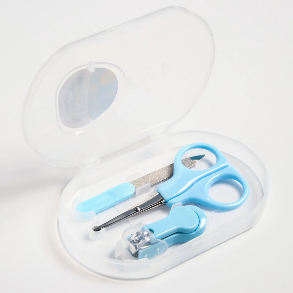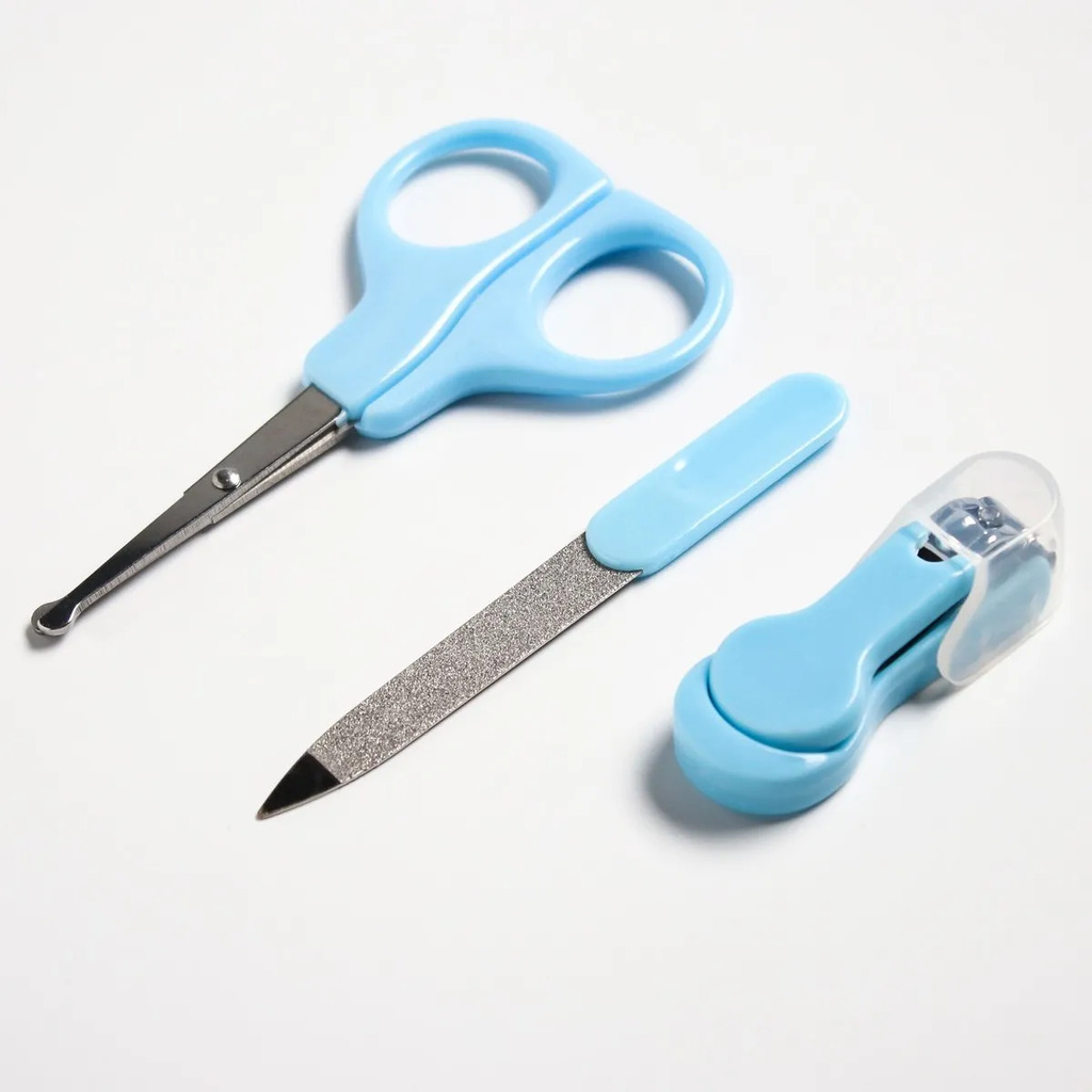 Больше информации (есть отзывы). Детский маникюрный набор (ножницы, книпсер, пилка), цвет голубой. Особенности: Закругленные кончики обеспечат полную безопасность во время использования. Мягкая пилочка не поранит нежную кожу малыша. За счет удобной ручки щипчики комфортно держать в руке. Изделие не содержит вредное вещество бисфенол А.