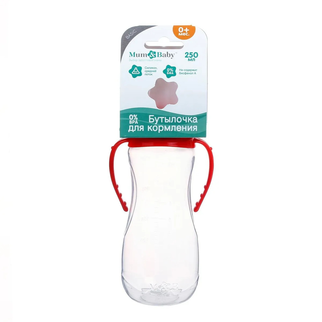 Бутылочка для кормления, классическое горло, с ручками, 250 мл., от 3 мес., цвет красный Mum&BabyВопросы по товару