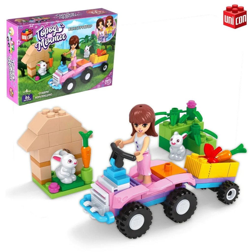 Больше информации (есть отзывы). Конструктор Город Мечты Квадроцикл», 86 деталей. Мечта каждой девочки! Конструктор UNICON Город мечты, это место где мечтает побывать каждая девочка. Соберите все игровые сюжеты розвого мира! Особенности: Элементы изготовлены из высококачественной пластмассы, надежно соединяются между собой и разбираются без особого труда. Совместим с конструкторами LEGO и его аналогами. Не только увлекательно, но и полезно! Следуйте подробной инструкции, и ребенок с легкостью соберет сюжет. Конструируя, ребенок развивает мелкую моторику рук, познавательную активность и воображение, становиться усидчивее и внимательнее. Товар предназначен для детей старше 6 лет.