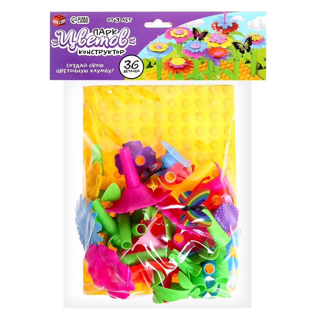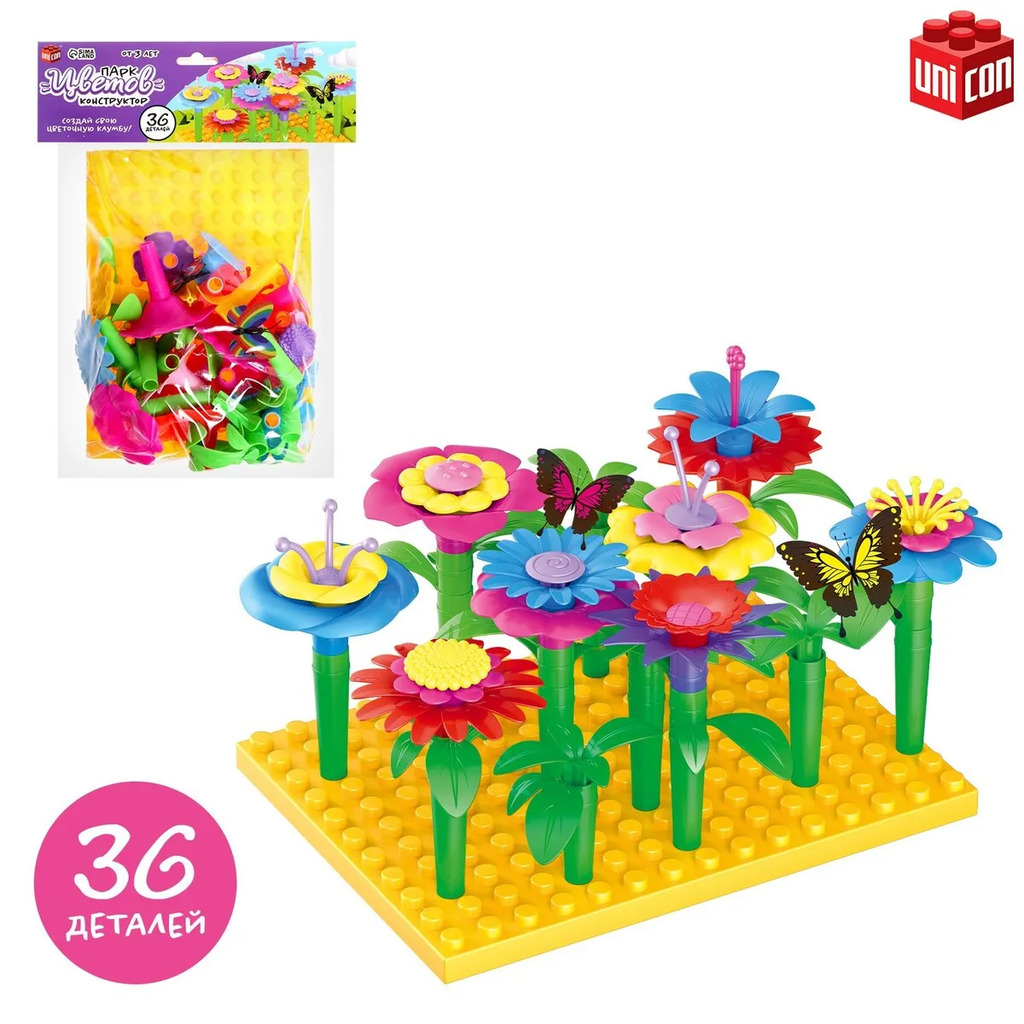 Больше информации (есть отзывы). Конструктор Парк Цветов», 36 деталей. С конструктором Парк Цветов» ребенок создаст различные композиции и украсит ими комнату или игрушечный город. В набор входит 36 деталей, которые можно собирать несколькими разными способами. Особенности конструктора Элементы можно комбинировать по-разному и каждый раз создавать оригинальные композиции. Конструктор выполнен из высококачественных материалов, что обеспечивает долговечность и безопасность при использовании. Разнообразие форм и цветовых вариантов позволяют развивать творческие способности и воображение ребенка. Увлекательно и полезно! Конструктор Парк Цветов» стимулирует усидчивость и терпение, поскольку сборка композиций требует внимания и точности. Также конструирование помогает развивать у детей: творческие способности, воображение и фантазию; мелкую моторику и координацию движений; логическое мышление и пространственное восприятие.
