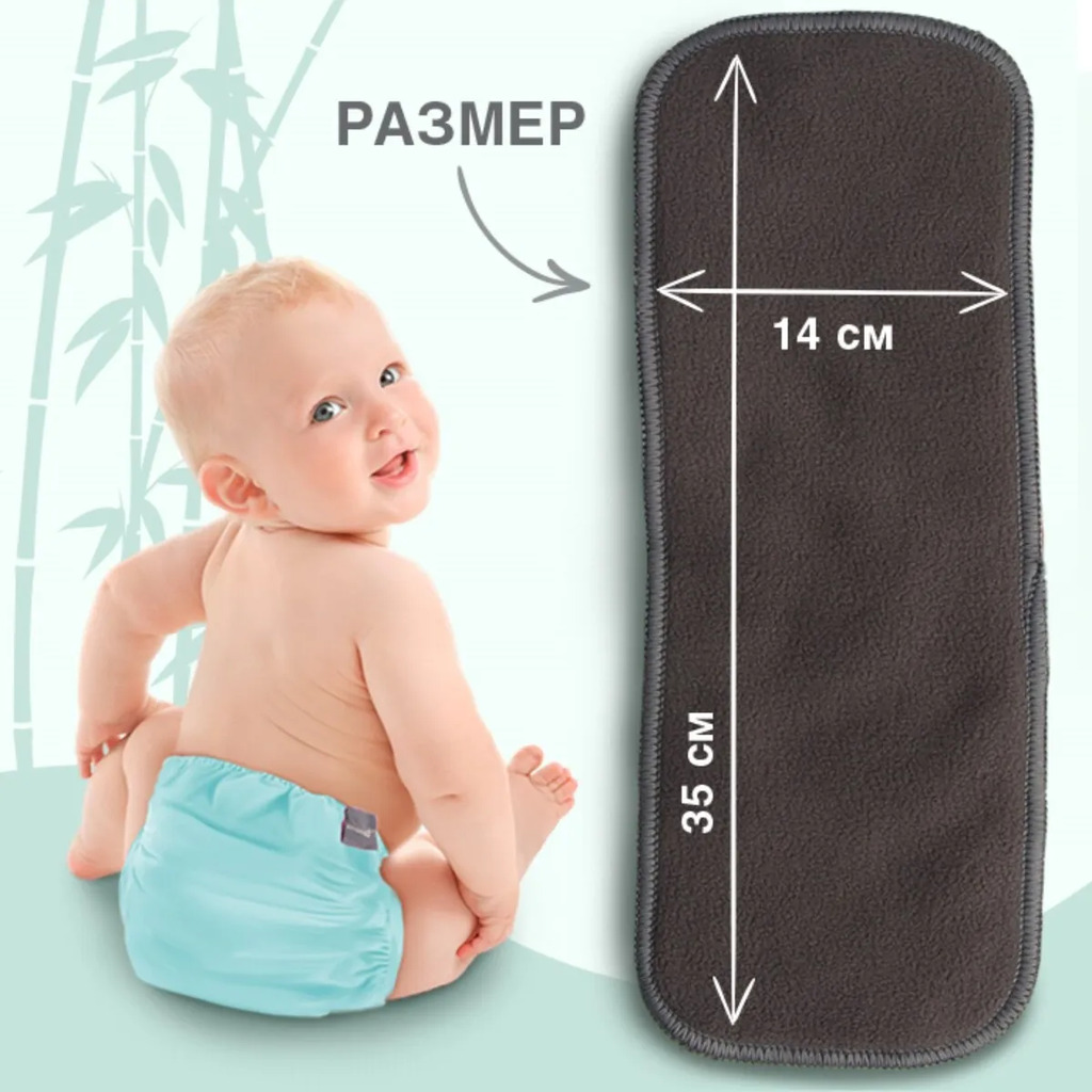Больше информации (есть отзывы). Вкладыш в многоразовый подгузник 5-ти слойный, Бамбуковый уголь. Поддержание личной гигиены является важной и необходимой частью ежедневного ухода за любимой крохой. Вкладыш в многоразовый подгузник это именно та вещь, которая поможет родителям заботиться о ребенке, чтобы он всегда оставался чистым и здоровым. Изделие создано из микрофибры, что обеспечивает лучшее впитывание.