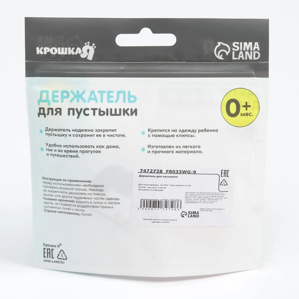 Больше информации (есть отзывы). Держатель для пустышки на ленте Мишки». Прищепка для пустышки предотвратит потерю маленького предмета. Используйте специальный держатель, и соска всегда будет под рукой! Изделие фиксируется на одежде ребенка. На конце цепочки есть карабин, который зацепляется за кольцо пустышки. Надежное крепление убережет вещь от падения на пол, если малютка случайно выронит ее изо рта. С держателем можно играть, притягательный дизайн точно понравится малышу. Товар изготовлен из качественного нетоксичного материала. Подходит для деток с рождения.