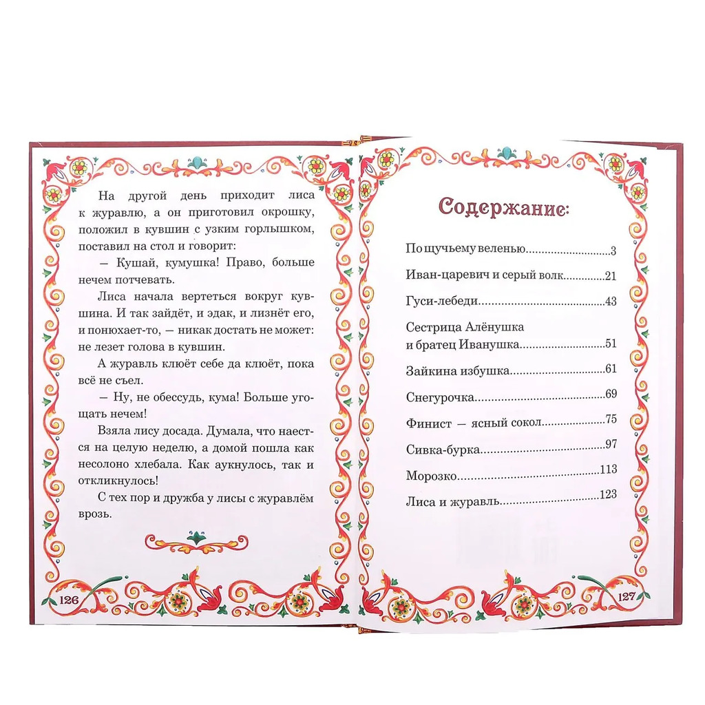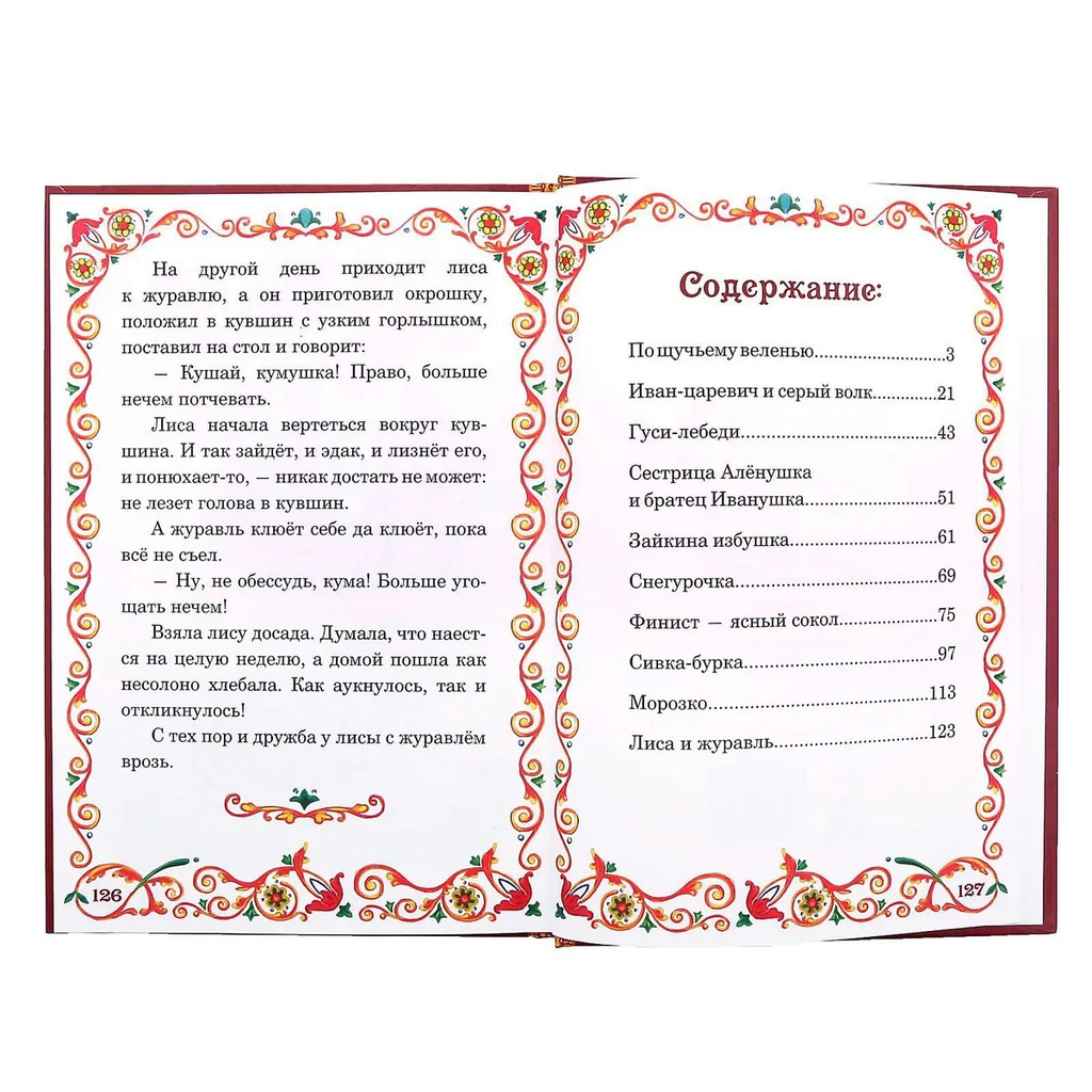 Больше информации (есть отзывы). Книга в твердом переплете Русские народные сказки»,128 стр. Сборник русских народных сказок с яркими картинками и красочным оформлением поможет занять ребенка, развить фантазию и привить любовь к чтению. В книгу вошли любимые многими поколениями произведения: По щучьему веленью»; Иван-царевич и серый волк»; Гуси-лебеди»; Сестрица Аленушка и братец Иванушка»; Зайкина избушка»; Финист ясный сокол. Сивка-бурка»; Морозко»; Лиса и журавль». Отправляйтесь в чудесное путешествие вместе с героями знаменитых сказок.