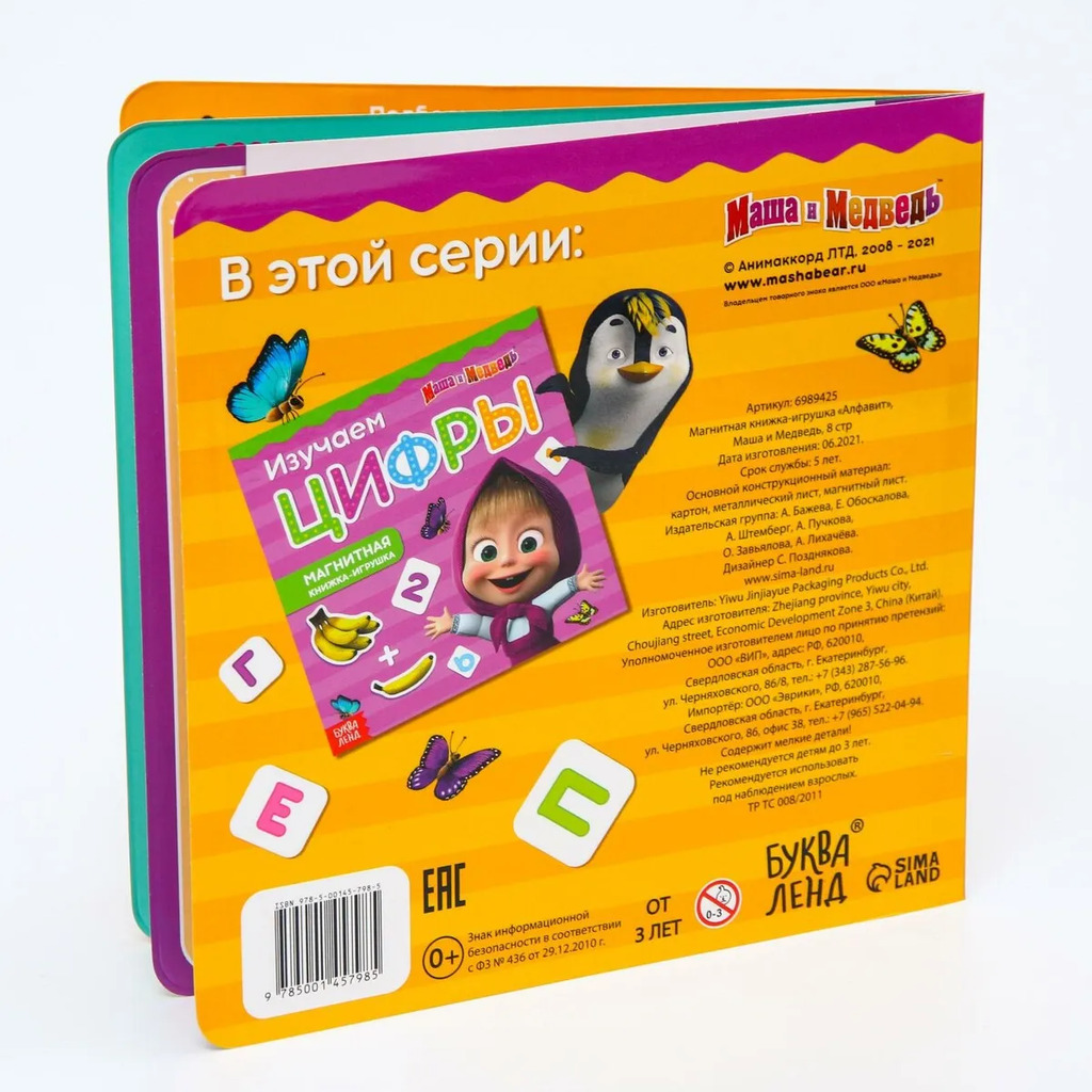 Больше информации (есть отзывы). Магнитная книга с заданиями Алфавит», 8 стр, 47 магнитов, Маша и Медведь». Магнитные книги отличный способ обучения ребенка в формате игры. Благодаря магнитным буквам малыш сможет учить алфавит, выполнять несложные задания с буквами внутри книги и одновременно играть с любимыми героями мультфильма. В комплекте 33 магнитные буквы, 14 магнитов с героями и предметами, а также текстильный мешочек для их удобного хранения. Магниты можно использовать на всех страницах книги, а также на любой металлической поверхности за ее пределами.