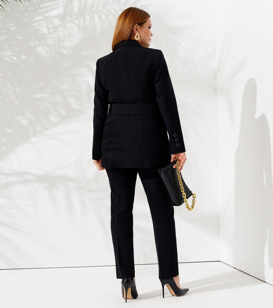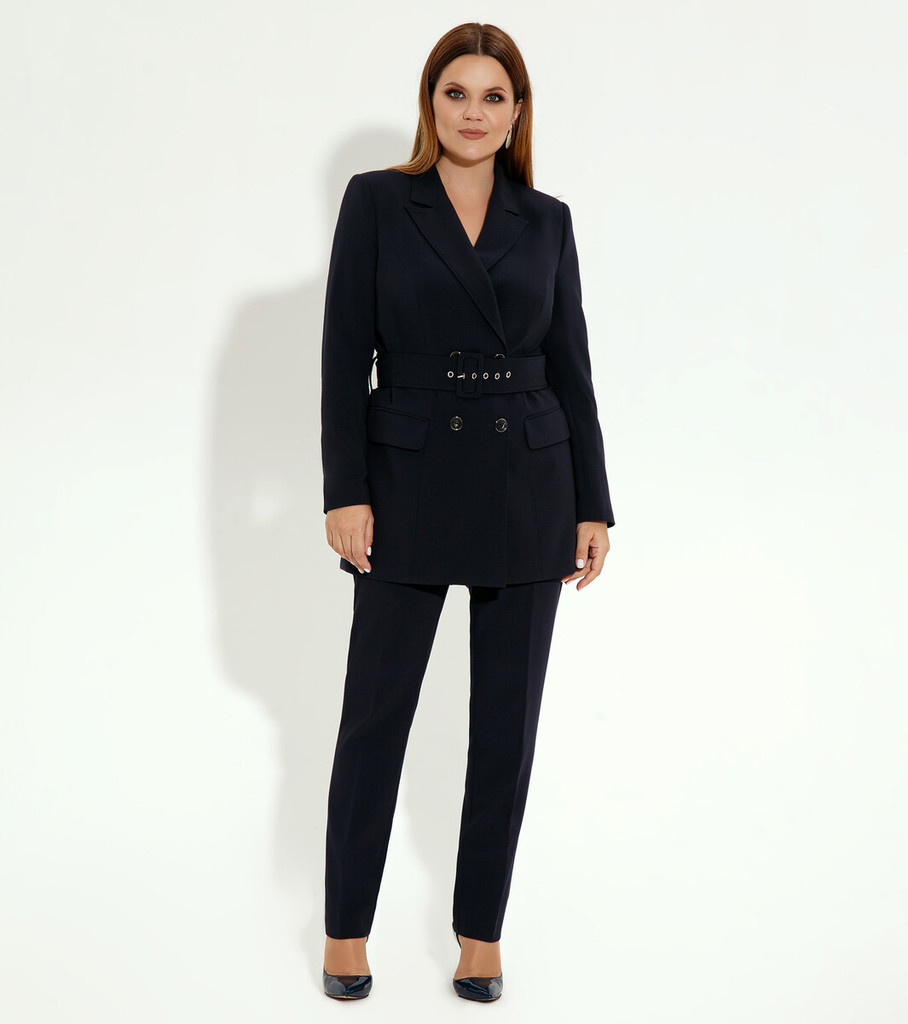 Больше информации (есть отзывы). Деловой женский костюм - одна из важнейших частей современного гардероба девушки. Он - полноценное решение для создания офисного или повседневного аутфита. Нужно только подобрать обувь, подходящие аксессуары - и стильный образ готов. Костюм женский классический составляют удлиненный жакет и брюки прямого кроя со стрелками. Двубортный пиджак приталенного силуэта с рельефными вытачками отлично корректирует фигуру. Его оригинальные детали - прорезные карманы с клапанами, отложной воротник, шлица в нижней части рукавов, шлевки. Костюм женский двухпредметный создан из гладкого, приятного на ощупь, прочного и плотного текстильного материала. Он неприхотлив в уходе, легко очищается от загрязнений. Трикотажный костюм женский стирают в деликатном режиме, гладят негорячим утюгом. Женский костюм устойчив к активной повседневной носке. Изделия не деформируются, не линяют, не выцветают. Вы можете купить брючный костюм женский в комплекте с поясом. Параметры изделия: Размер 48 Жакет: Длина изделия - 76,5 см, Длина рукава - 62 см, Ширина плеча - 11,5 см, Ширина по бедрам - 54,5 см, Ширина по груди - 51 см, Ширина рукава - 18,3см; Брюки: Высота посадки - 26 см, Длина брюк с поясом - 104,5 см, Длина по внутреннему шву - 78 см, Ширина брючин сверху - 65 см, Обхват брюк по низу - 36,5 см, Ширина по бедрам - 51 см, Ширина по талии - 40,5см; Размер 50 Жакет: Длина изделия - 76,5 см, Длина рукава - 62 см, Ширина плеча - 12 см, Ширина по бедрам - 56,5 см, Ширина по груди - 53 см, Ширина рукава - 19см; Брюки: Высота посадки - 26,5 см, Длина брюк с поясом - 104,5 см, Длина по внутреннему шву - 78 см, Ширина брючин сверху - 67 см, Обхват брюк по низу - 37 см, Ширина по бедрам - 53 см, Ширина по талии - 43см; Размер 52 Жакет: Длина изделия - 76,5 см, Длина рукава - 62 см, Ширина плеча - 12 см, Ширина по бедрам - 58,5 см, Ширина по груди - 55 см, Ширина рукава -