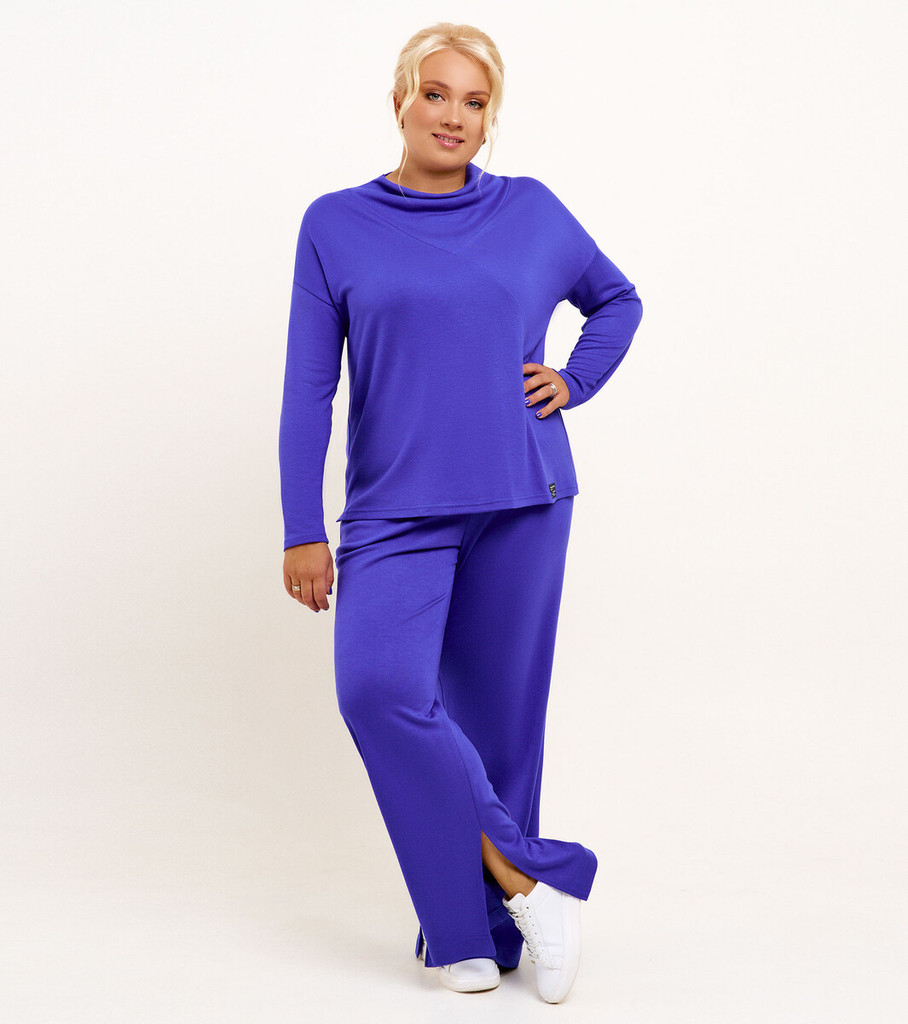 Больше информации (есть отзывы). Стильный брючный костюм женский станет вашим помощником на прогулке, в офисе или дома. Он пошит из приятного на ощупь трикотажа, хорошо садится по фигуре, дарит комфорт в межсезонье или прохладным летним днем. Женский костюм oversize выполнен в больших размерах 52-60. Благодаря удачному крою комплект женский скрывает лишние сантиметры. Джемпер свободного кроя с разрезами на рукавах вместе с брюками создают стильный тандем, а глубокий синий цвет визуально стройнит. Вы можете купить женский костюм с брюками на выгодных условиях для себя или в подарок. Параметры изделия: Размер 52 Джемпер: Длина изделия - 65 см, Длина рукава - 62 см, Ширина плеча - 10,5 см, Ширина по груди - 55 см, Ширина по низу - 60 см, Ширина рукава - 19см; Брюки: Высота посадки - 32 см, Длина брюк с поясом - 113 см, Длина по внутреннему шву - 85 см, Ширина брючин сверху - 76 см, Ширина брючин по низу - 61 см, Ширина по бедрам - 60 см, Ширина по талии - 42,5см; Размер 54 Джемпер: Длина изделия - 65 см, Длина рукава - 62 см, Ширина плеча - 10,5 см, Ширина по груди - 57 см, Ширина по низу - 62 см, Ширина рукава - 19,5см; Брюки: Высота посадки - 32,5 см, Длина брюк с поясом - 113 см, Длина по внутреннему шву - 85 см, Ширина брючин сверху - 78 см, Ширина брючин по низу - 62 см, Ширина по бедрам - 62 см, Ширина по талии - 44,5см; Размер 58 Джемпер: Длина изделия - 65 см, Длина рукава - 62 см, Ширина плеча - 10,5 см, Ширина по груди - 61 см, Ширина по низу - 66 см, Ширина рукава - 20,5см; Брюки: Высота посадки - 33,5 см, Длина брюк с поясом - 113 см, Длина по внутреннему шву - 85 см, Ширина брючин сверху - 82 см, Ширина брючин по низу - 64 см, Ширина по бедрам - 66 см, Ширина по талии - 48,5см;