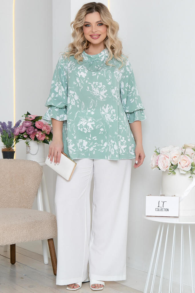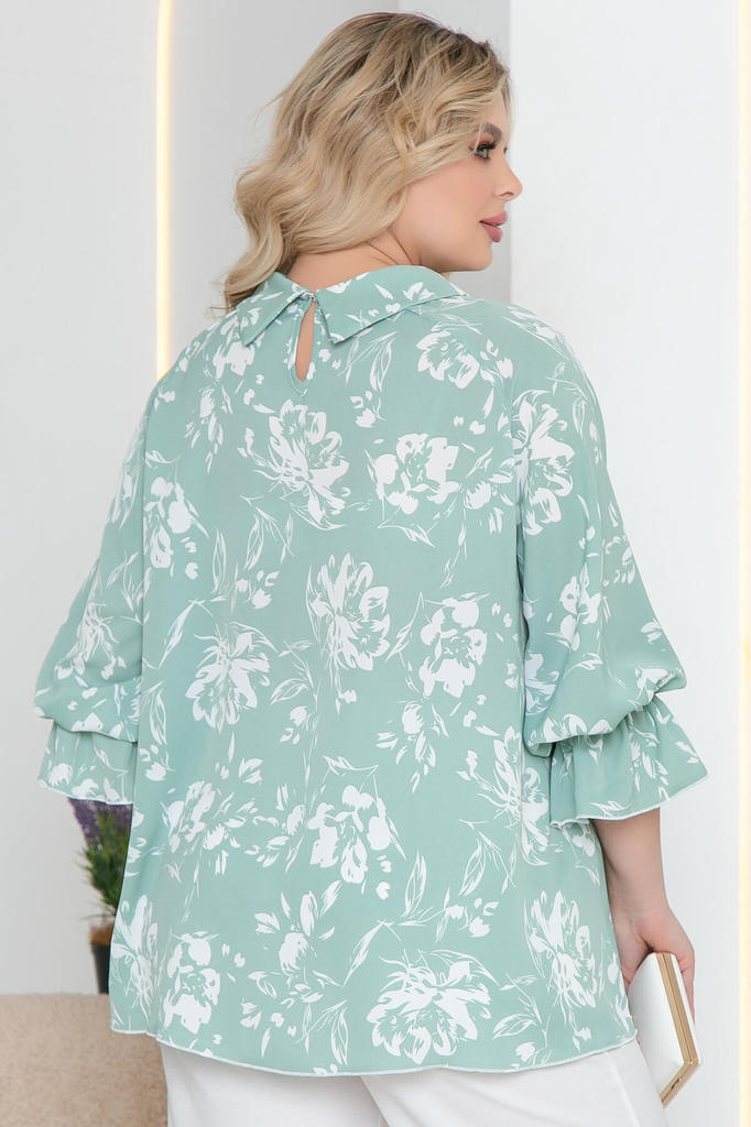 Артикул: Б7355. Ткань: блузочная. Состав: 97% п/э, 3% эластан. Цвет: мятный. Вид застежки: без застёжки. Имитация застёжки на пуговицы. Силуэт: прямой. Карманы: отсутствуют. Тип горловины:&n... Показать описаниеbsp;отложной. Длина изделия по спинке: 48/ 66 см, 50/ 67 см, 52/ 68 см, 54/ 69 см, 56/ 70 см, 58/ 71 см. Рост модели: 170 см. Классическая блуза в мелкий горошек - прекрасный вариант для офисных образов. Модель дополнена красивым акцентом - пышными рукавами на манжетах. По переду блузы выполнена имитация застежки на пуговицы. Уход за изделием: бережная стирка до 30 градусов; нельзя отбеливать; деликатный отжим; гладить при t не более 110 С; гладить с изнанки. *Допуск отклонения длины при массовом производстве 1-3 см является нормой.