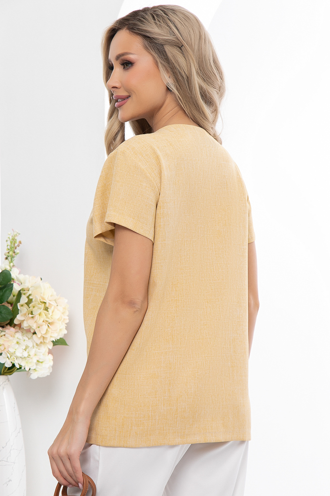 Артикул: Б5804. Ткань: тайваньский лён. Состав: 60% хлопок, 35% п/э, 5% спандекс. Цвет: жёлтый. Вид застежки: отсутствуют. Силуэт: прямой. Карманы: отсутствуют. Тип горловины: V-образны... Показать описанией. Длина изделия по спинке: 44-50/ 65 см, 52-54/ 66 см. Длина рукава: 44-46/ 16 см, 48-50/ 17 см, 52-54/ 18 см. Рост модели: 168 см. Желание быть красивой, привлекательной и неповторимой затрагивает все области жизни женщины. Основную работу в этой задаче берет на себя внешний вид, а именно одежда. Элегантная блуза позволит создать милый, но в то же время практичный образ. Изделие украшает модный V-образный вырез с акцентным воротником. Такая блуза позволит создать более свободный образ или наоборот подчеркнет всю красоту фигуры с помощью пояса, который входит в комплект. Уход за изделием: бережная стирка до 30 градусов; нельзя отбеливать; деликатный отжим; гладить при t не более 110 С; гладить с изнанки. *Допуск отклонения длины при массовом производстве 1-3 см является нормой.